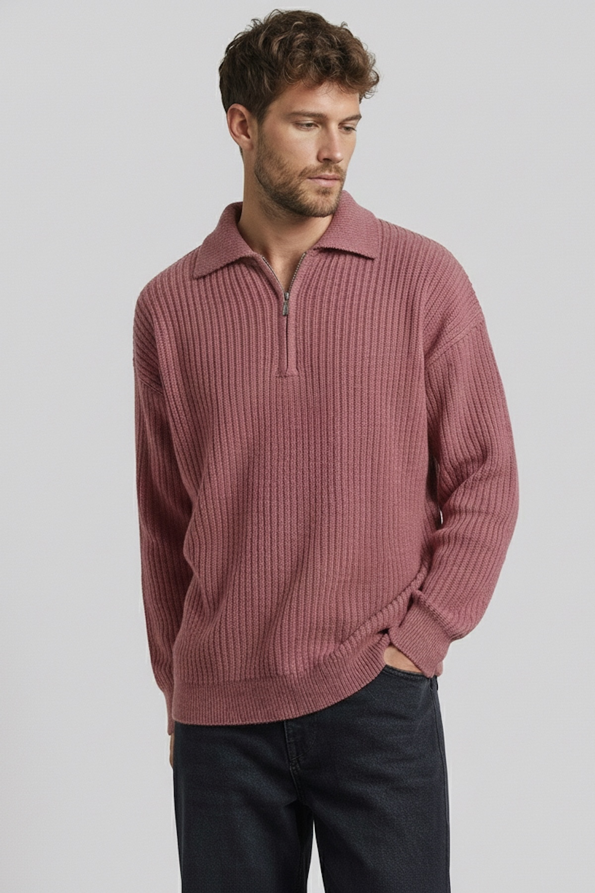 ميزات سترة بياقة بولو كبيرة الحجم بنصف سحاب من hateko