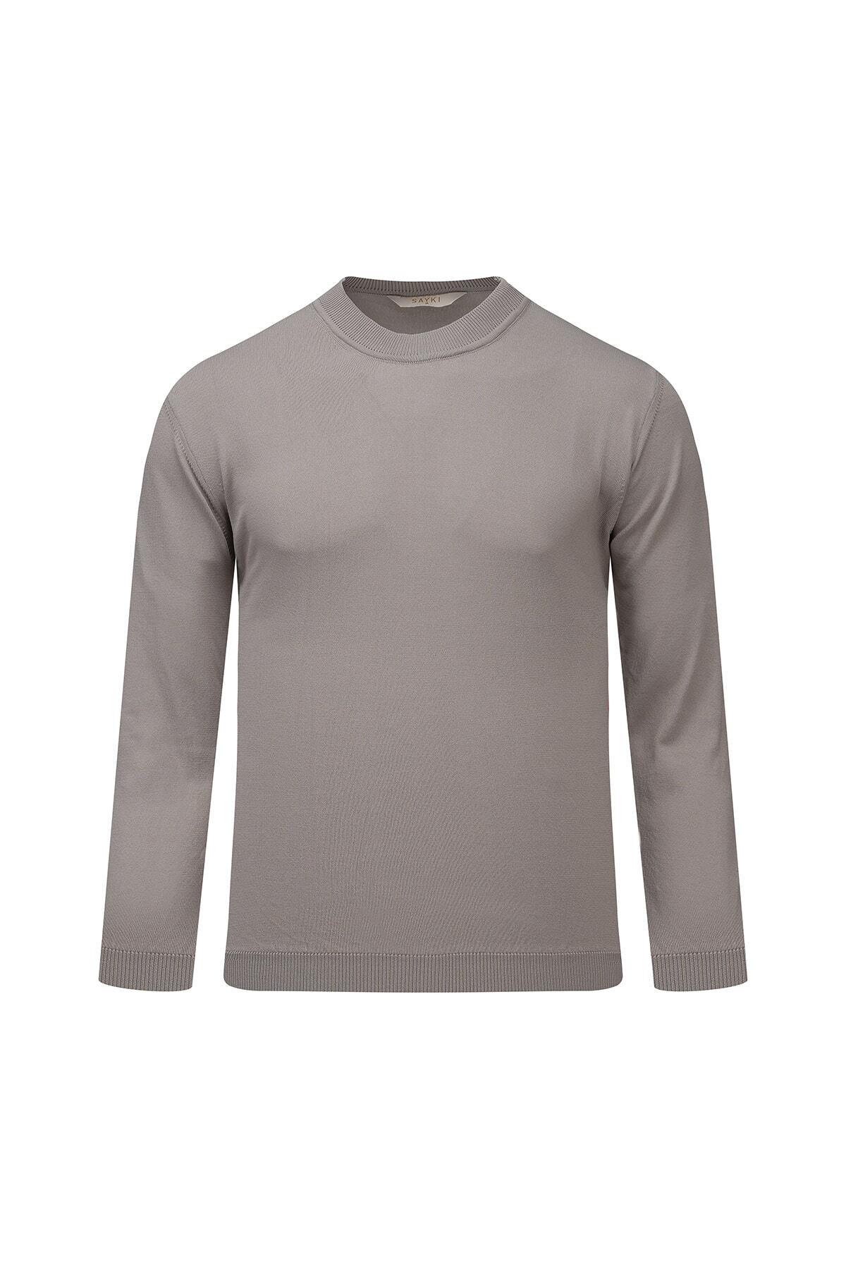 ميزات سترة رايون رمادية اللون بقصة عادية وياقة نصفية من Hatemoğlu