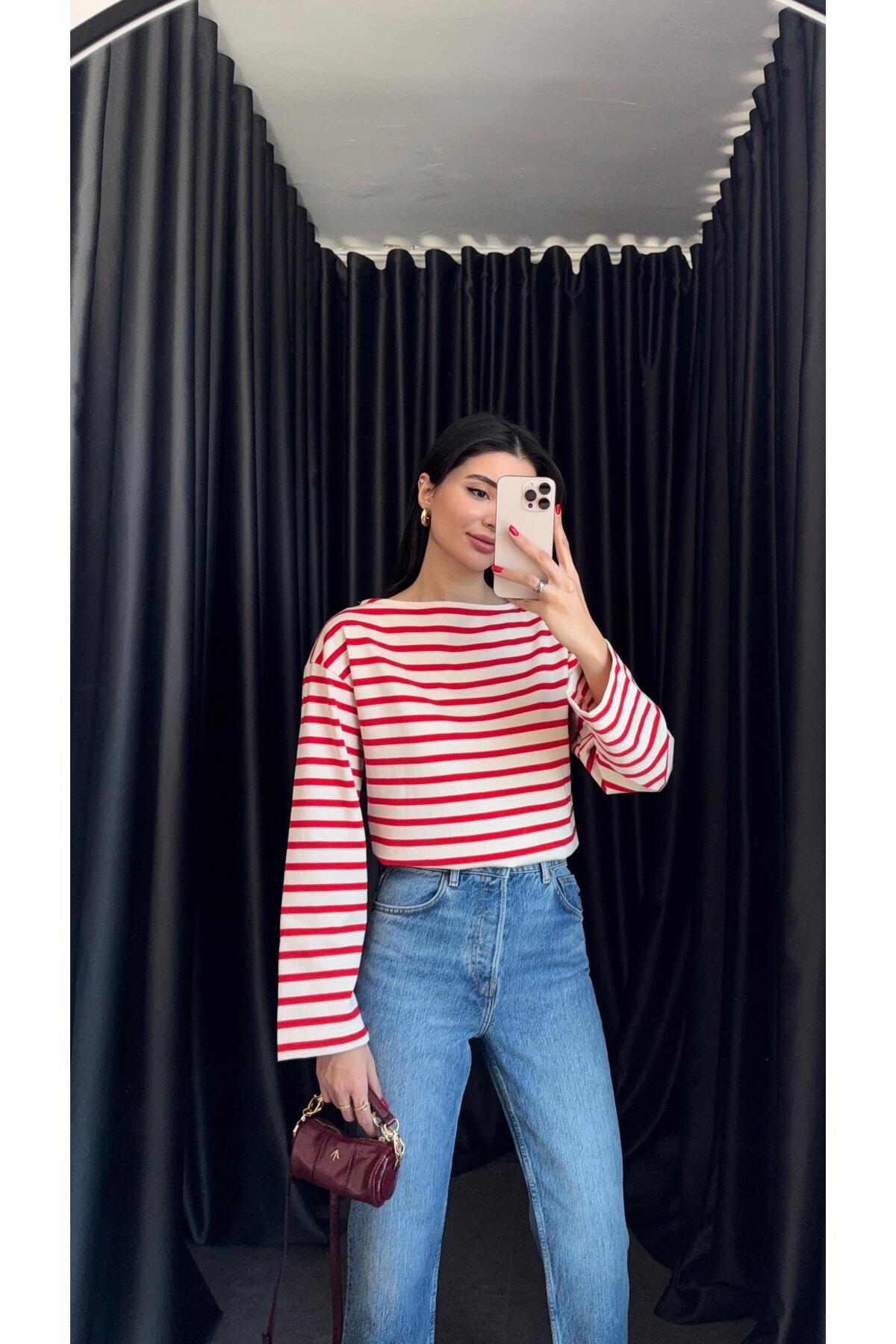 HAZELANNA طوق قارب أحمر مخطط أساسي