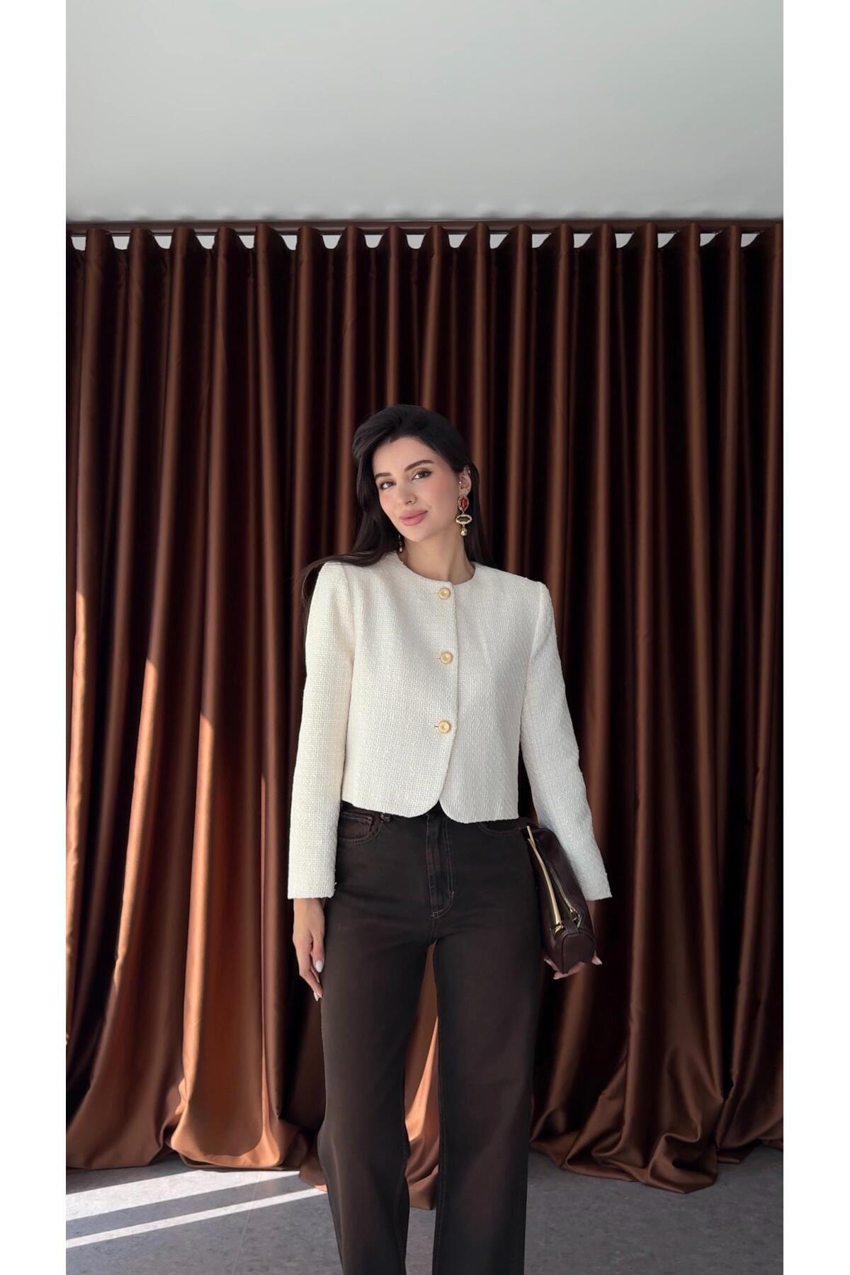 HAZELANNA سترة تويد مبطنة بأزرار ذهبية