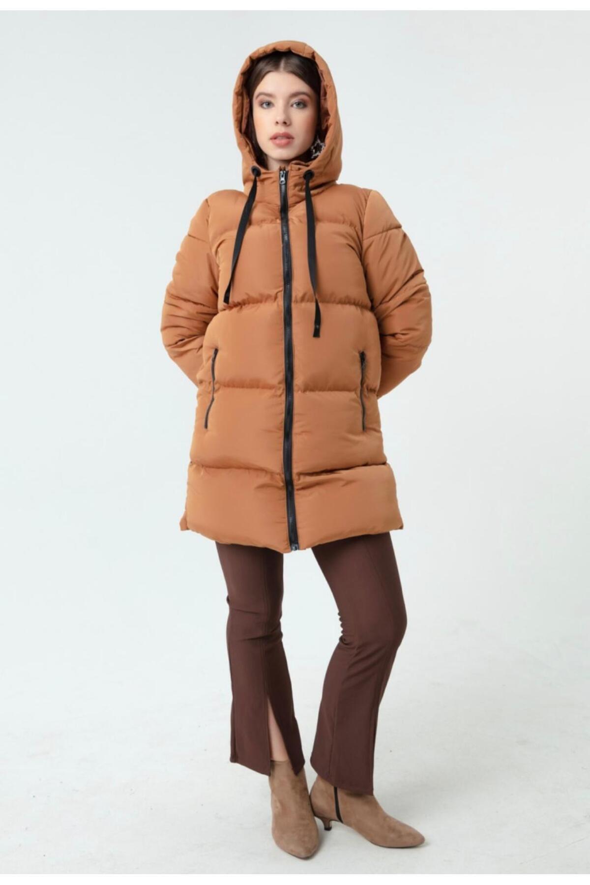 hedef giyim سترة طويلة منتفخة بغطاء للرأس
