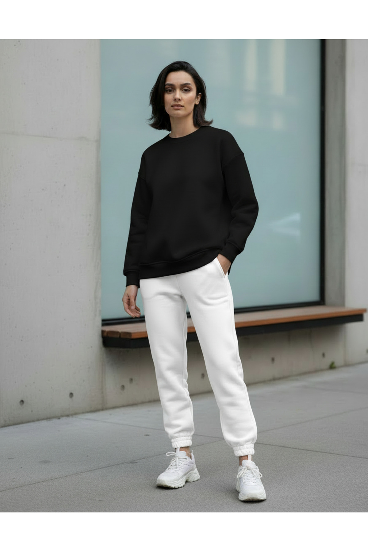 ميزات سترة رياضية | ياقة الدراجة | أكمام طويلة | سويت شيرت كاجوال مريح أساسي من HELLİE