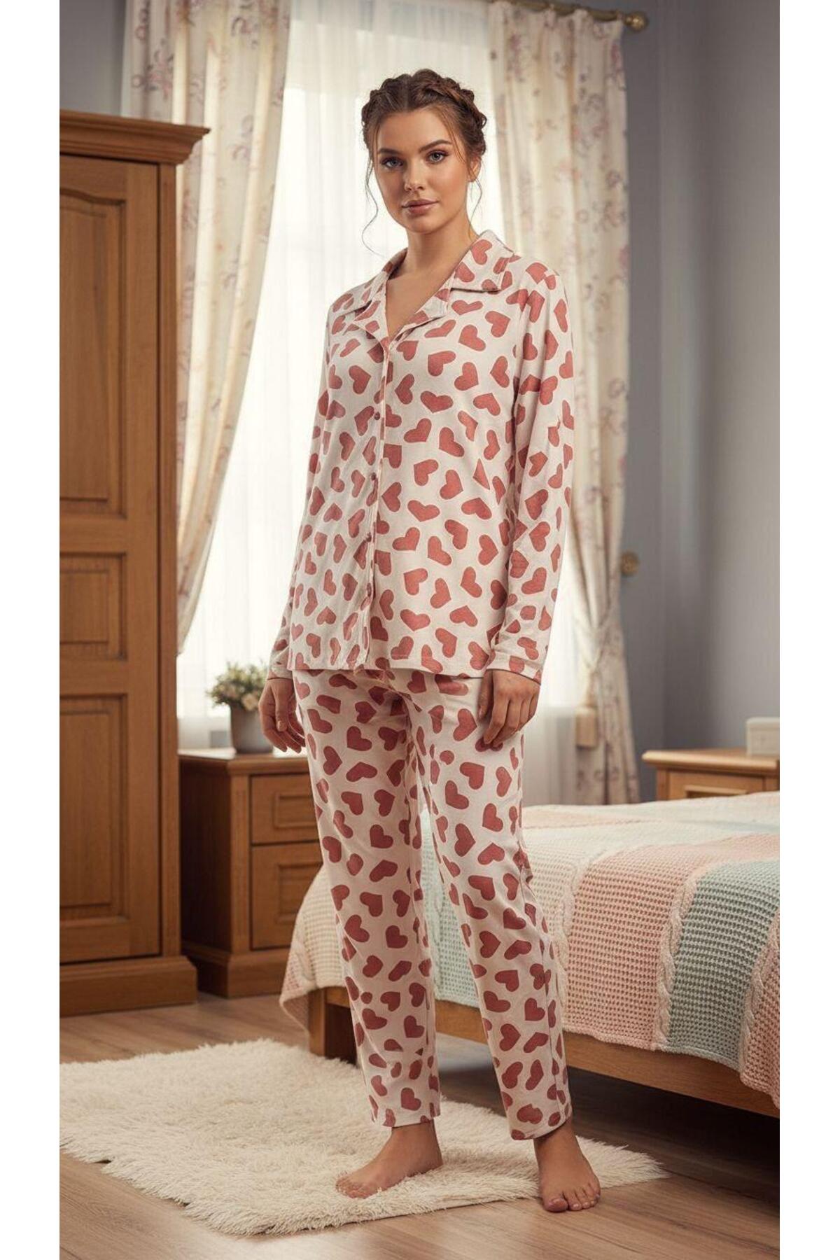 ميزات طقم بيجامة بأكمام طويلة وأزرار أمامية من Hepyek