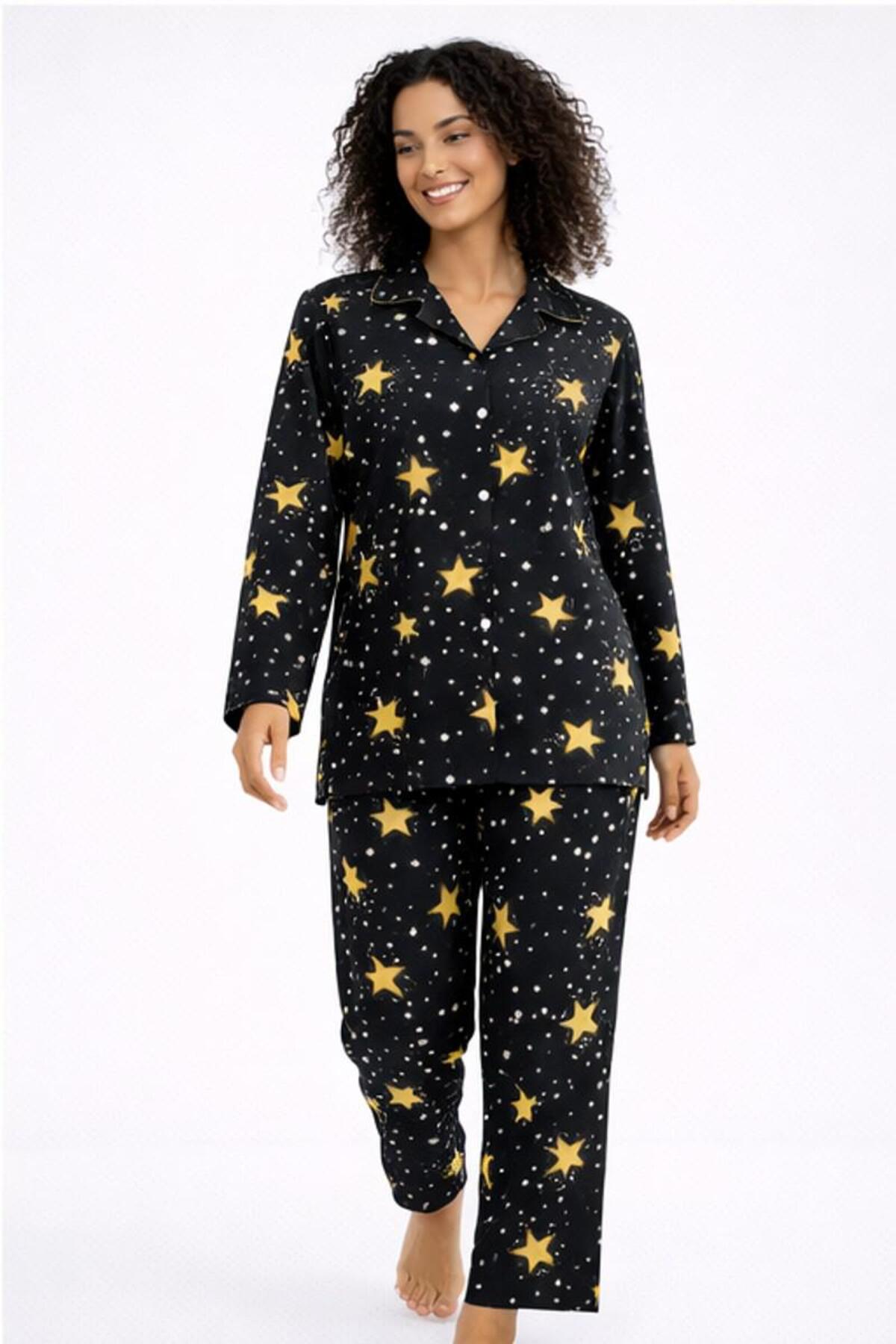 ميزات طقم بيجامة بأكمام طويلة وأزرار أمامية من Hepyek