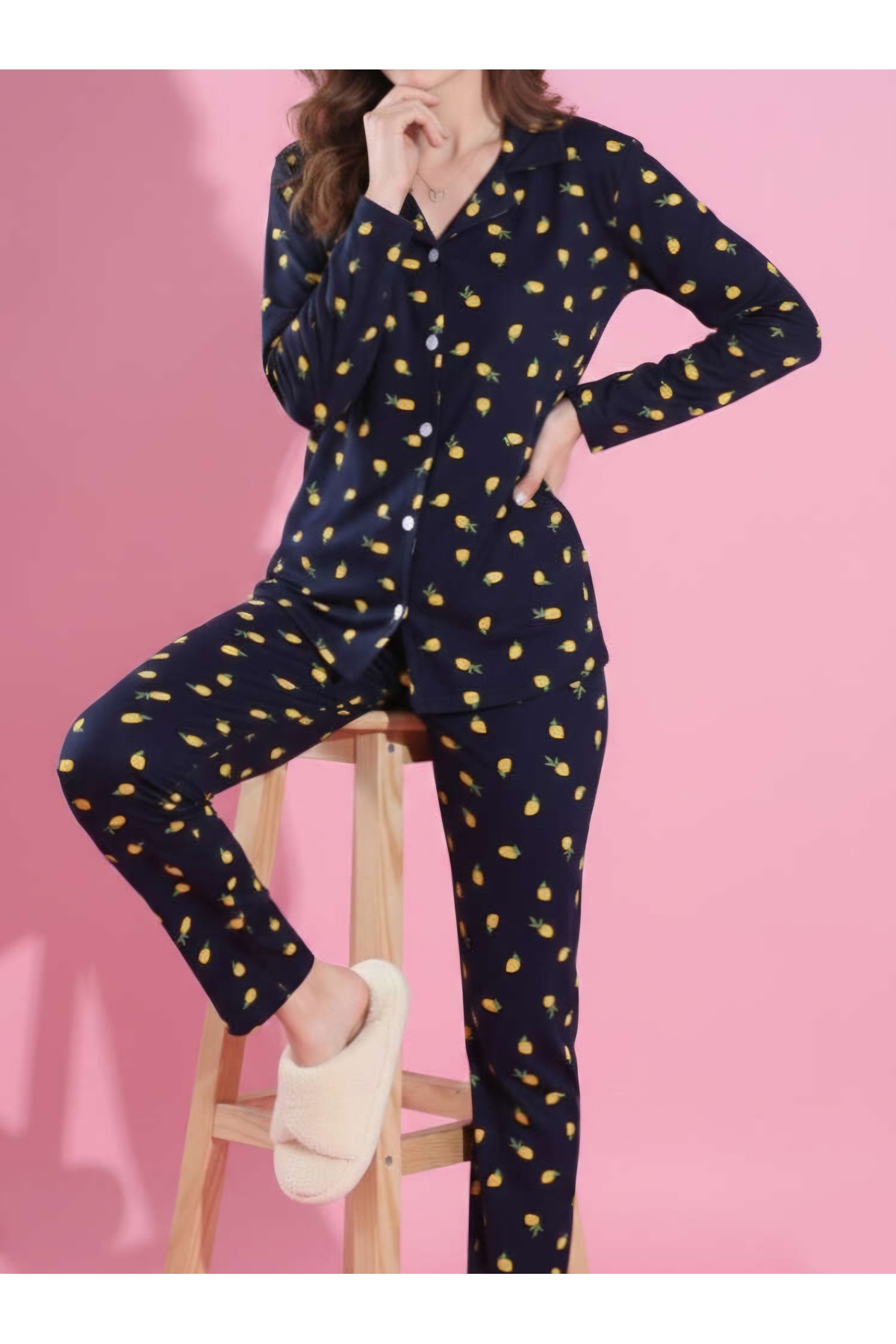ميزات طقم بيجامة من قماش السويد المنقوش من Hepyek
