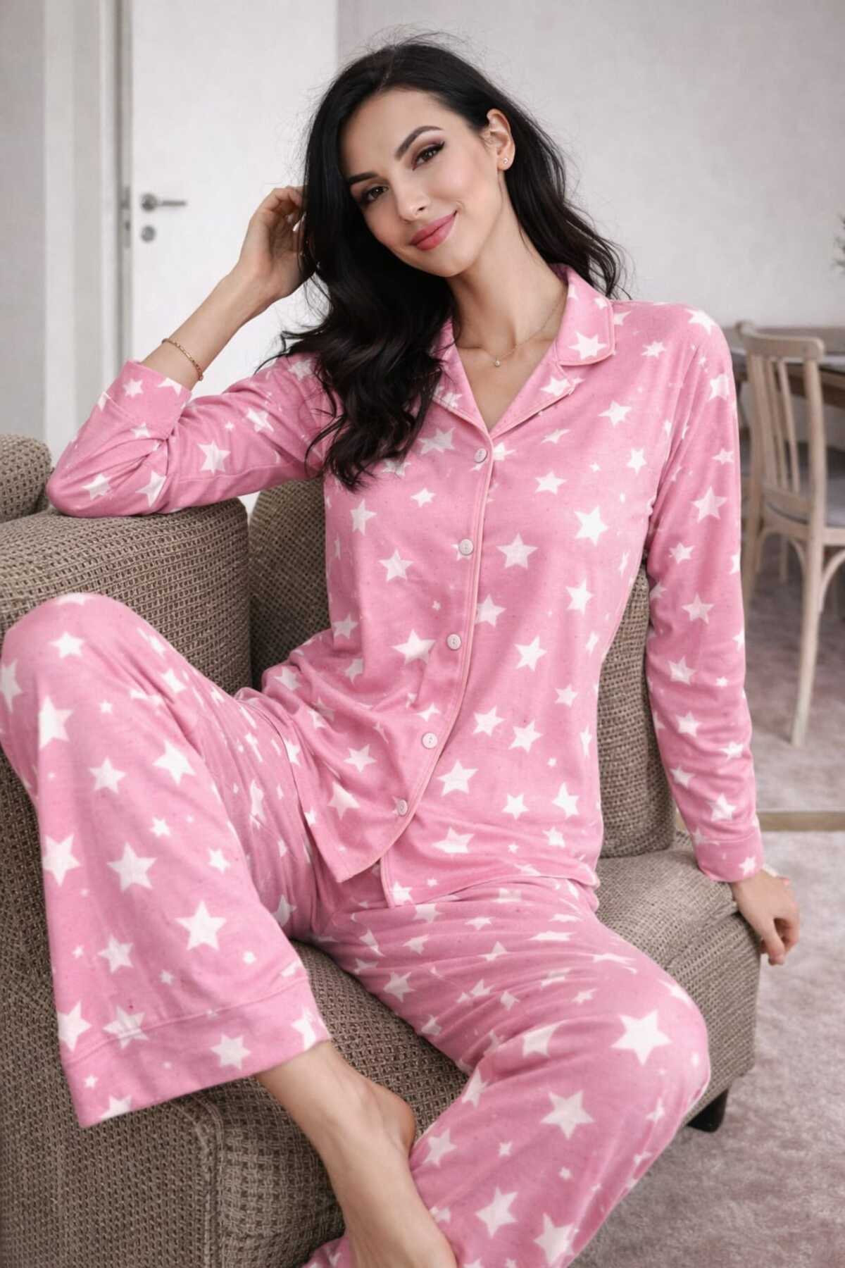 Hepyek طقم بيجامة من قماش السويد المنقوش