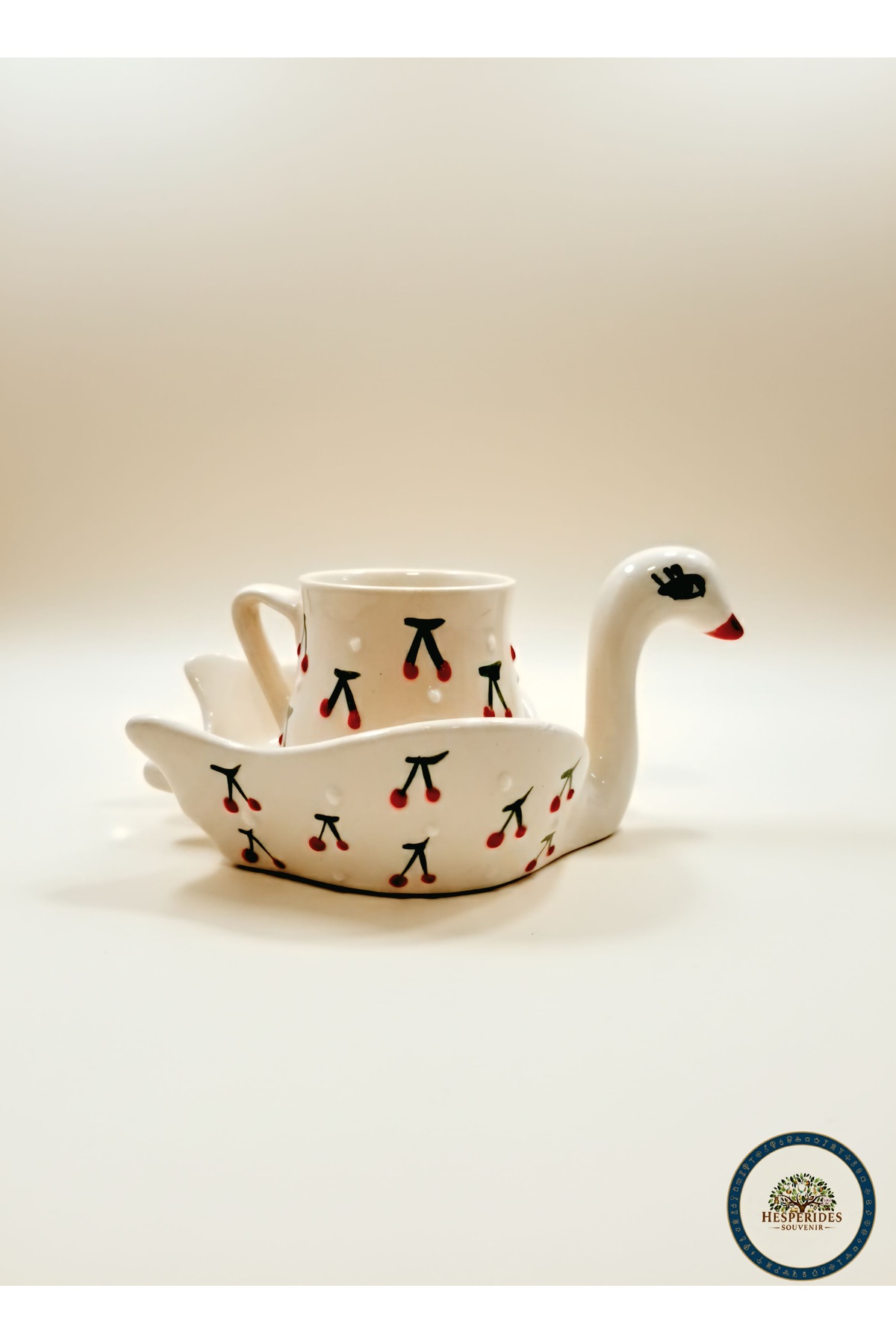 ميزات كوب البجعة المصنوع يدوياً من السيراميك بنمط الكرز من hesperides