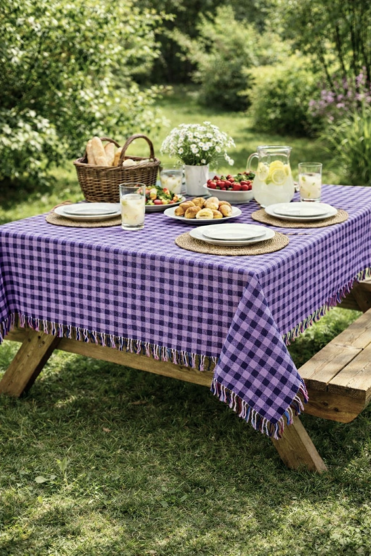 ميزات بنقش مربعات قماش مفرش طاولة، مفرش نزهة بنمط مربعات صغيرة، نمط بوتيكارا مفرش طاولة من Hevia Home