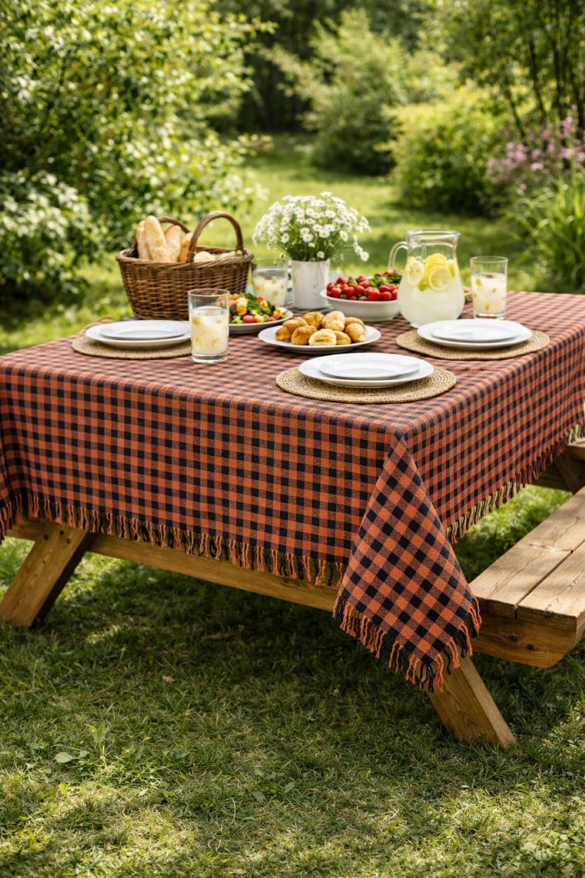 ميزات بنقش مربعات قماش مفرش طاولة، مفرش نزهة بنمط مربعات صغيرة، نمط بوتيكارا مفرش طاولة من Hevia Home