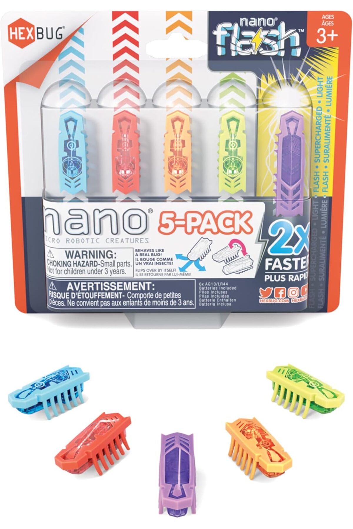 ميزات مجموعة نانو بلس فلاش سينسوري باغ المكونة من 5 قطع من Hexbug