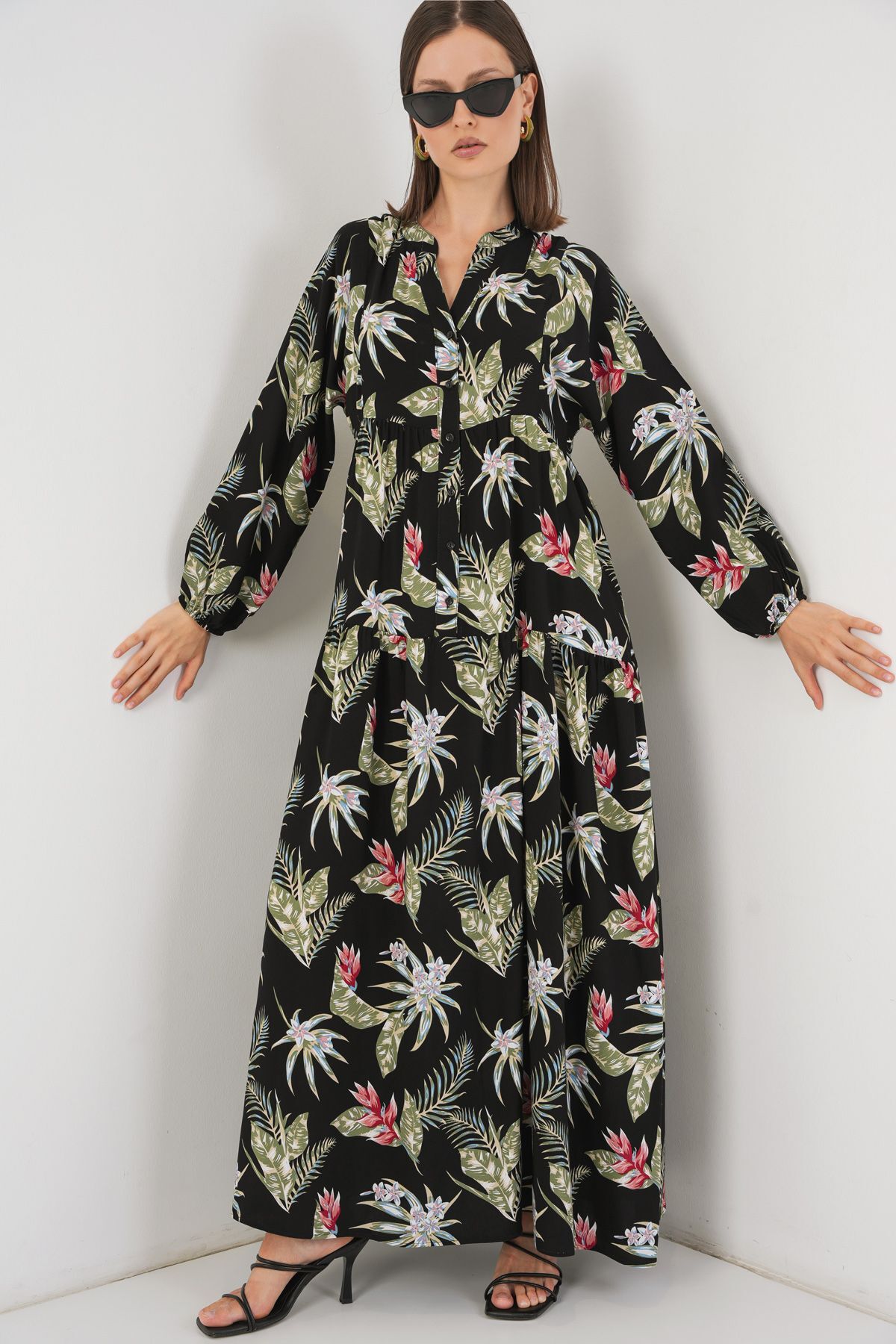 ميزات فستان ماكسي منقوش بياقة على شكل حرف V وأزرار من BDART من Hiccup