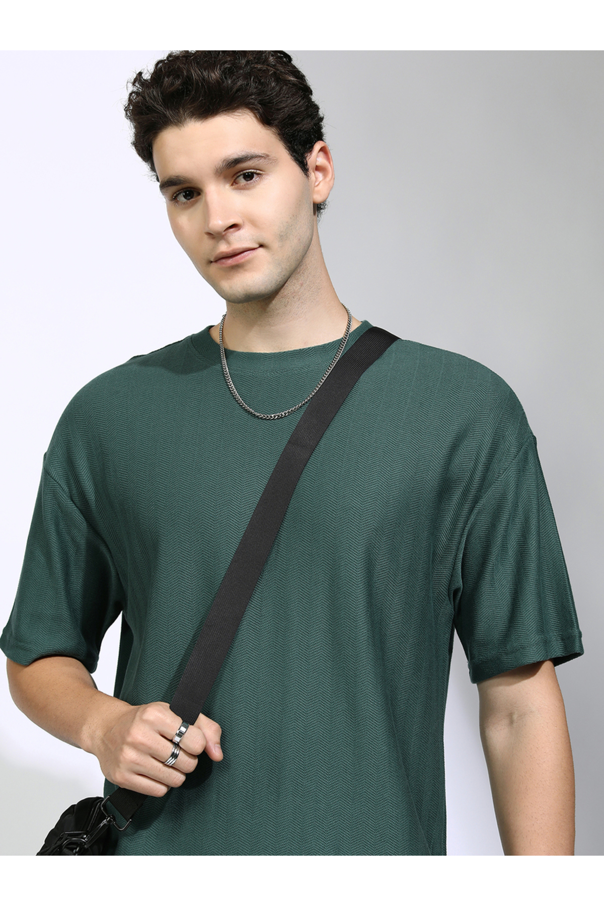 ميزات تي شيرت سادة كبير الحجم بكتف منسدل من Highlander By Styli