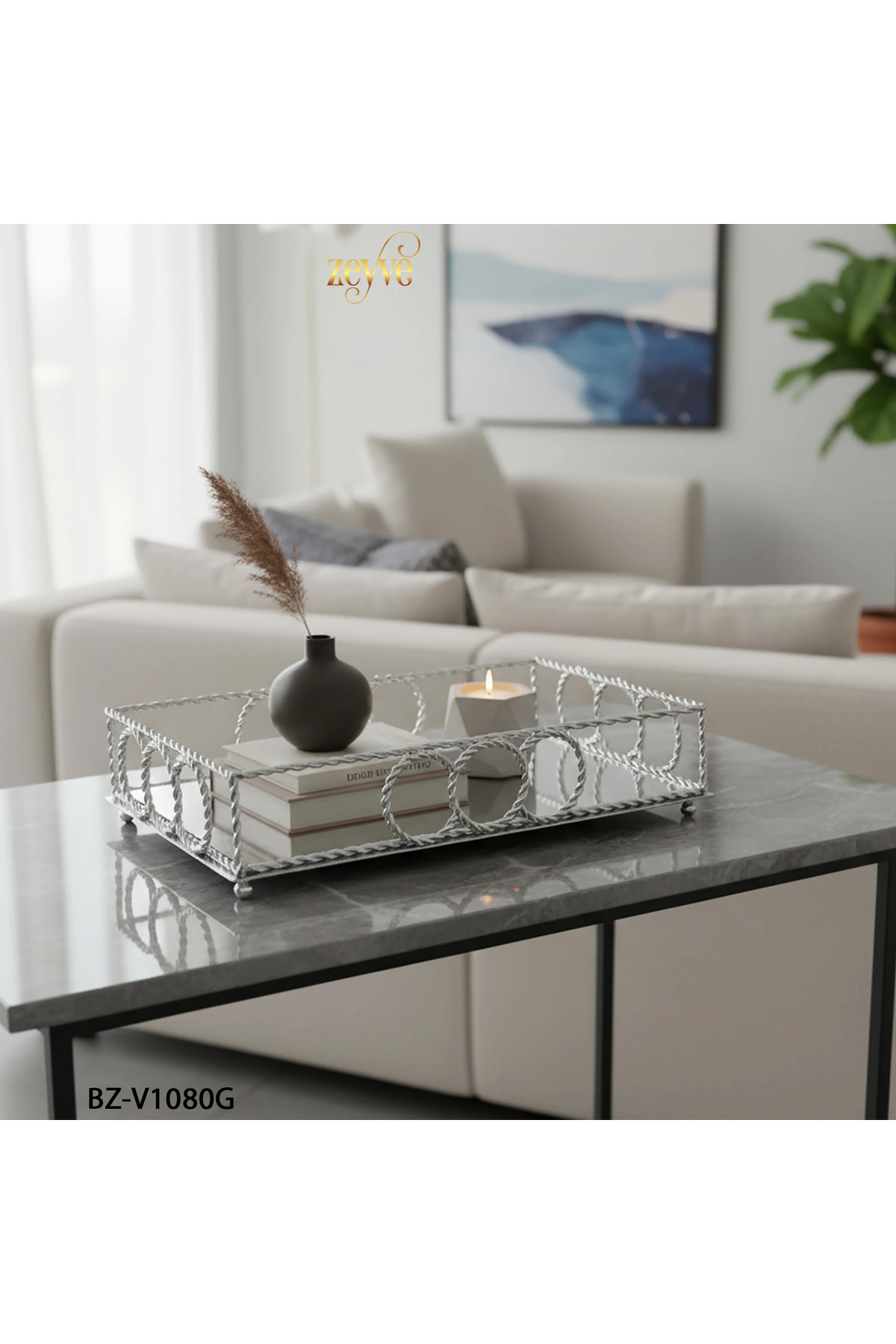 Hinora صينية ديكور أنيقة على شكل حلقة حلزونية مستطيلة الشكل مع مرآة، مقاس 40×26×9 سم