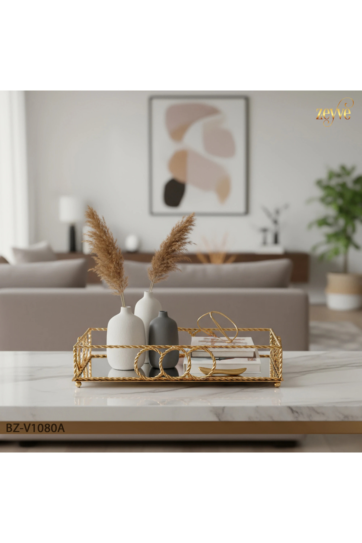 Hinora صينية ديكور أنيقة على شكل حلقة حلزونية مستطيلة الشكل مع مرآة، مقاس 40×26×9 سم