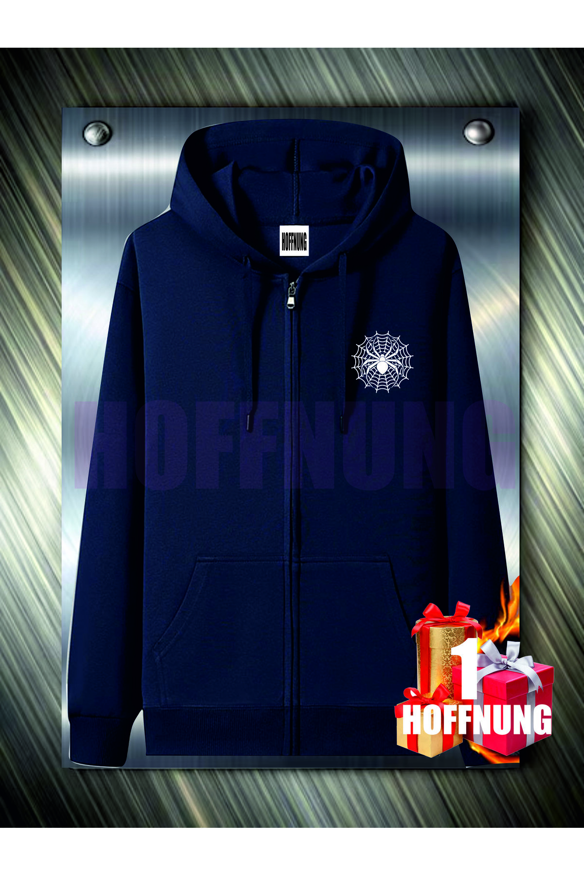ميزات سترة زيب سبايدر منقوشة بخيطين كبيرة الحجم باللون الأسود من HOFFNUNG