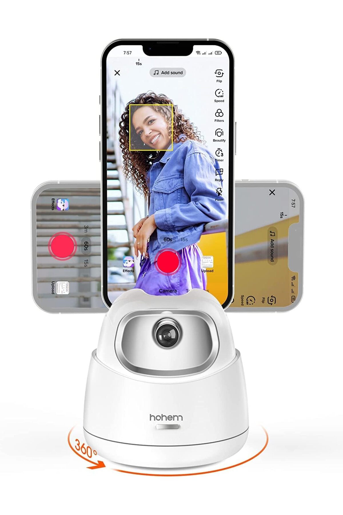 Intelligent face-recognition tracking, 2-axis movement, 360-degree rotation, compatible with mobile phones and tablets
