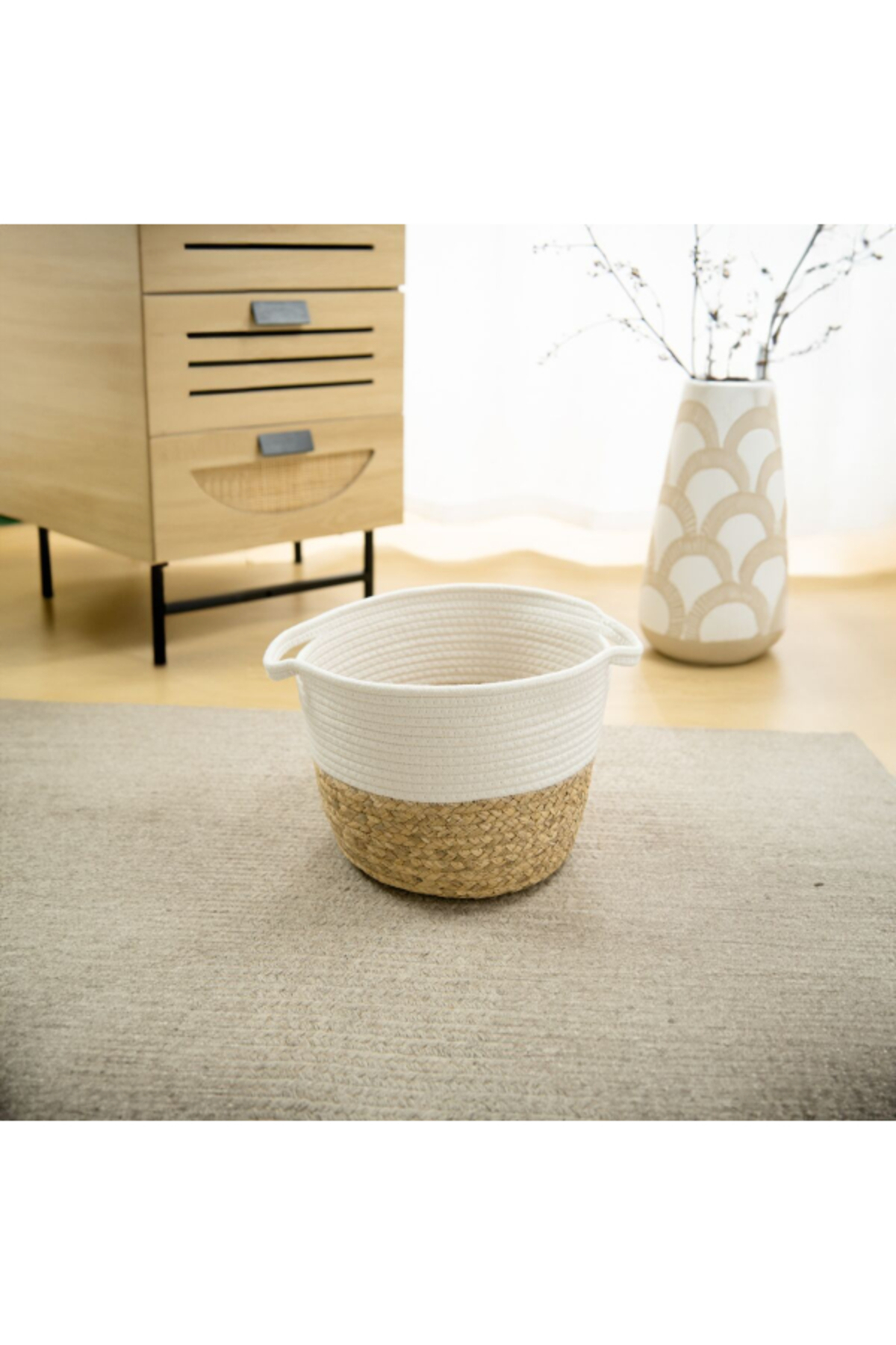 HONEYBEE سلة تخزين خفيفة الوزن ومتينة من القش لتوفير المساحة