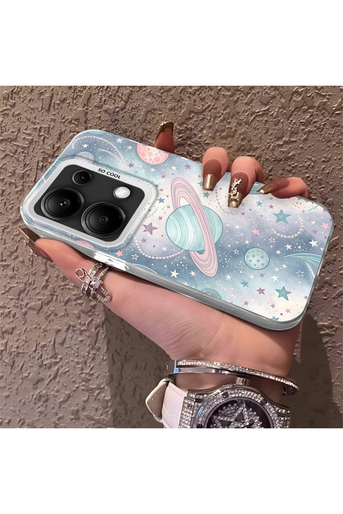 Hontinga حافظة صلبة رفيعة بنمط فضائي مع حماية للكاميرا، متوافقة مع هاتف Poco M6 Pro 4G