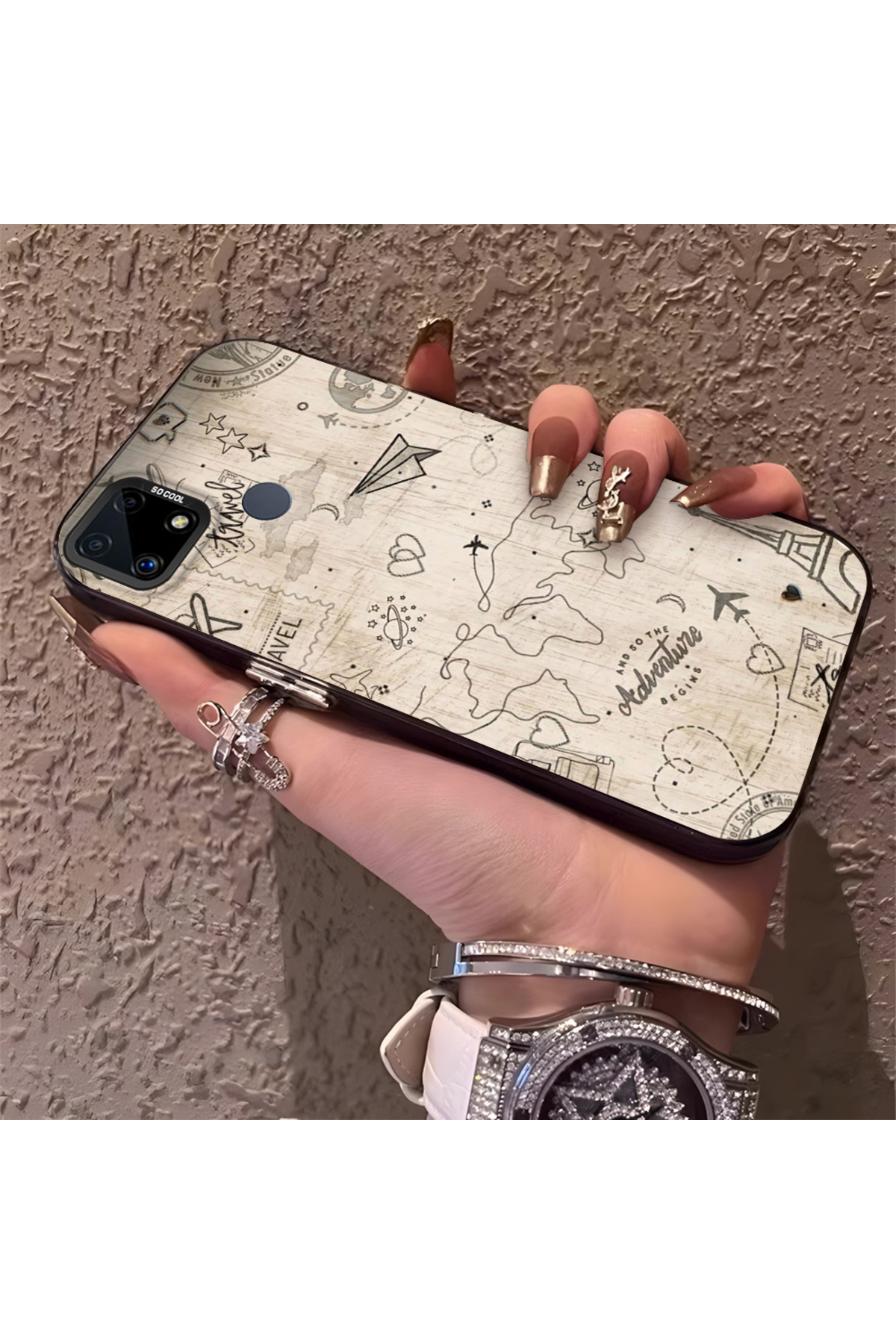 Hontinga حافظة صلبة رفيعة بنمط فضائي مع حماية للكاميرا متوافقة مع هاتف Realme C25