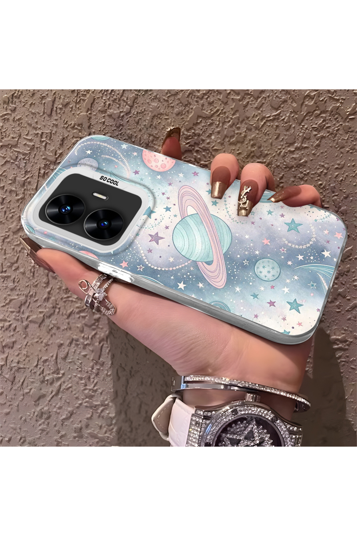 Hontinga حافظة صلبة رفيعة بنمط فضائي مع حماية للكاميرا متوافقة مع هاتف Realme C55