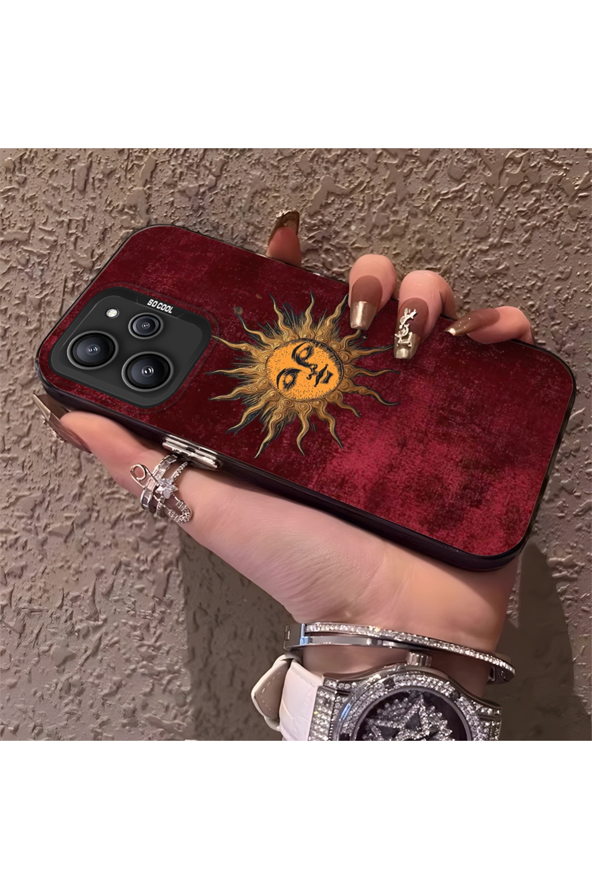 Hontinga حافظة صلبة رفيعة مزودة بحماية للكاميرا بنمط الشمس، متوافقة مع هاتف Redmi 12 4G