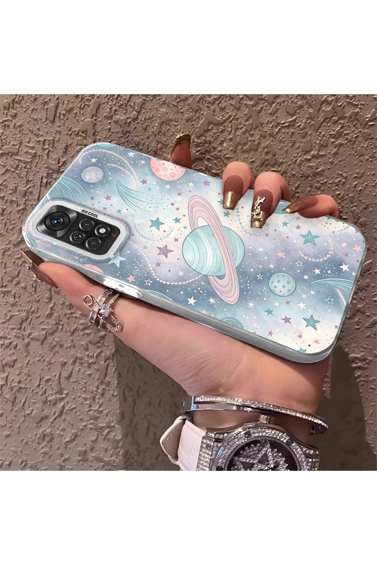 Hontinga حافظة صلبة رفيعة مع حماية للكاميرا بنمط فضائي متوافق مع هاتف Redmi Note 11