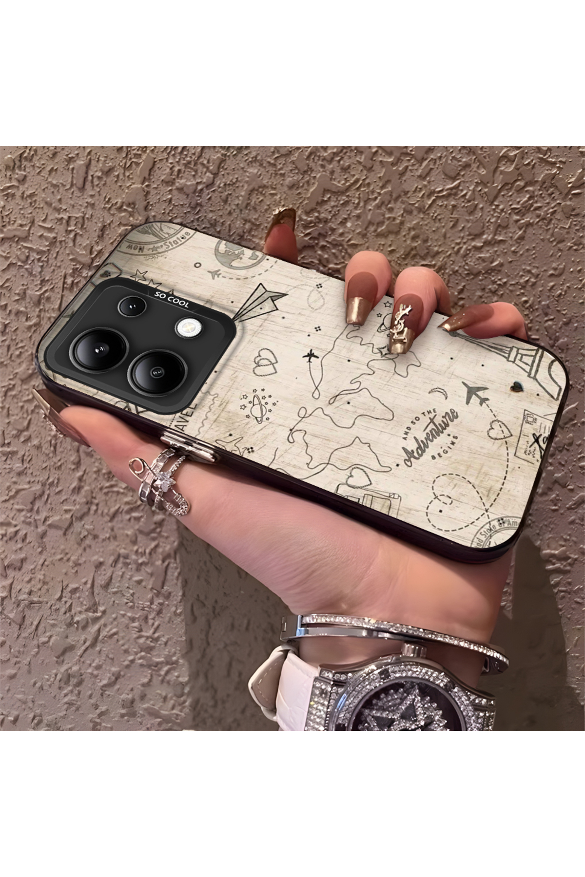 ميزات حافظة صلبة رفيعة مع حماية للكاميرا بنمط فضائي متوافق مع هاتف Redmi Note 13 من Hontinga
