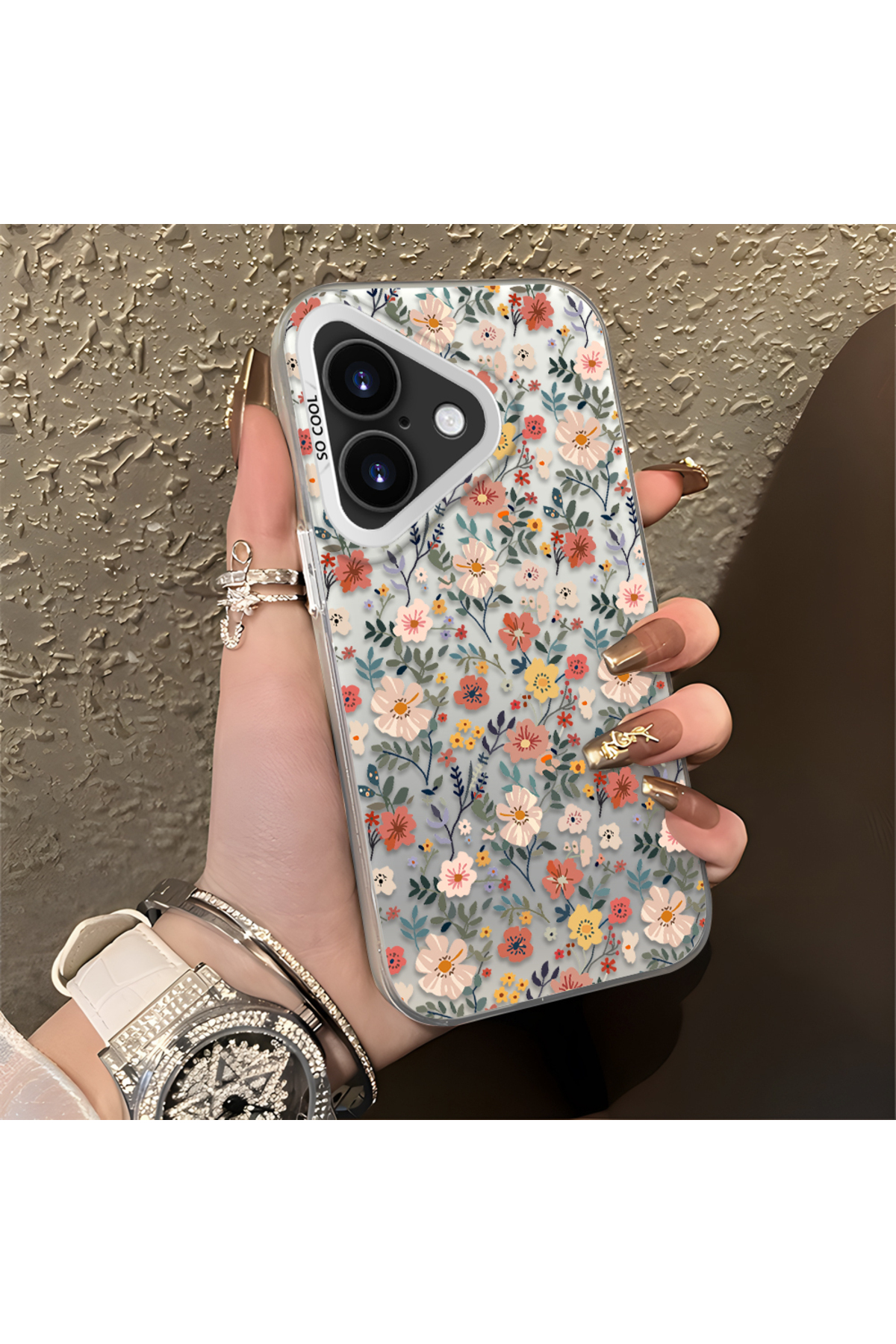 Hontinga غطاء حماية نحيف من السيليكون مقاوم للصدمات بنمط غصن الزهرة متوافق مع iPhone 16