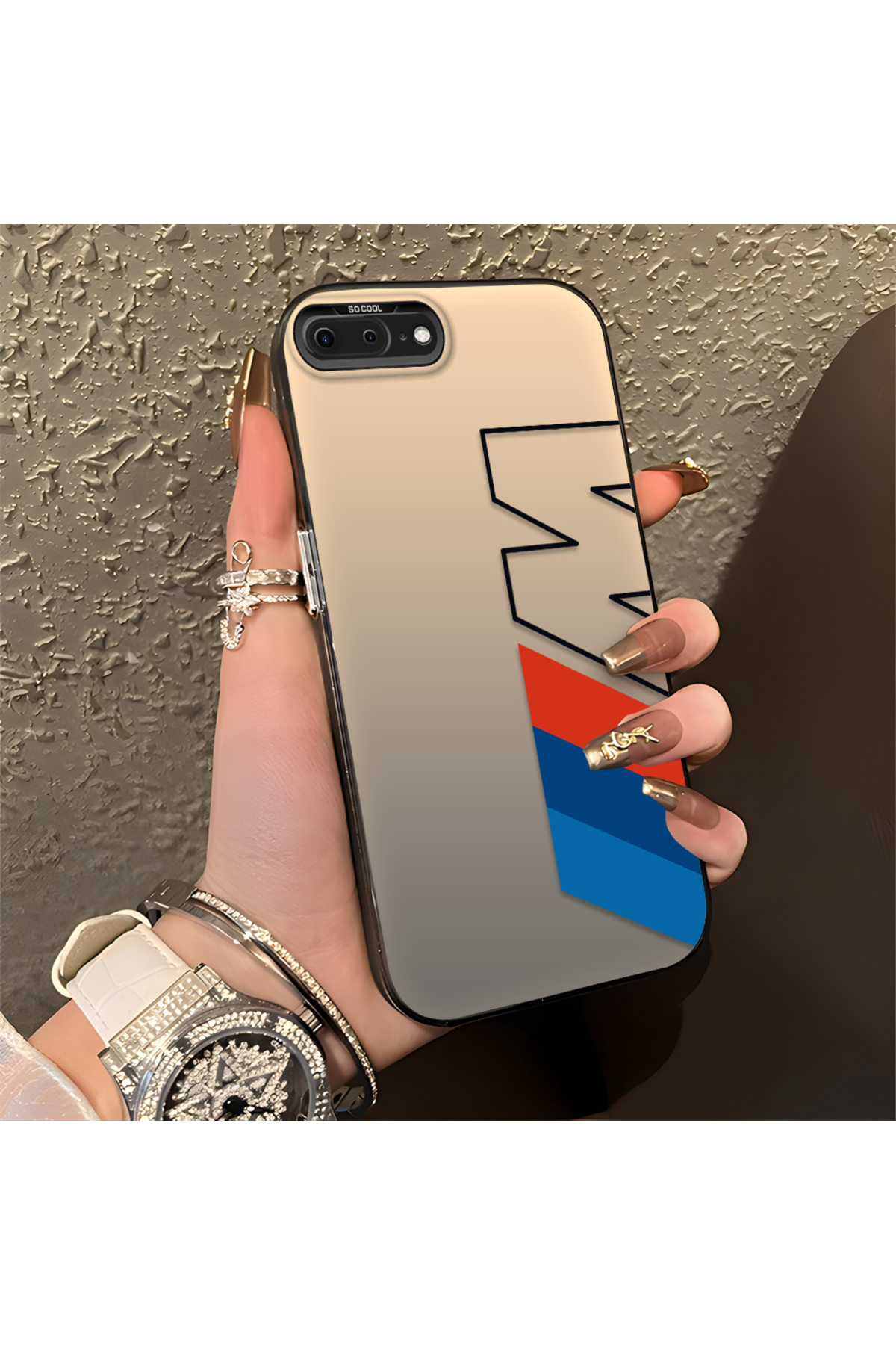 ميزات حافظة سيليكون متوافقة مع هاتف iPhone 7 Plus ذات حافة صلبة ومضادة للسقوط BMW منقوش من Hontinga