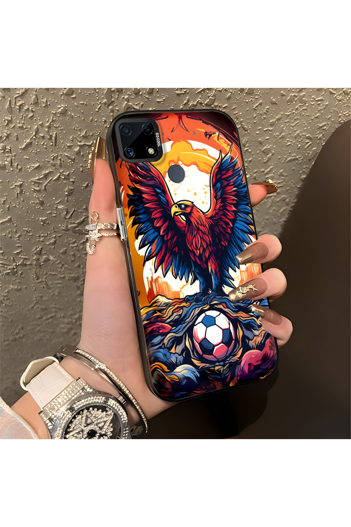 ميزات حافظة متوافقة مع هاتف Realme C25S، حافظة هاتف صلبة مضادة للسقوط، نمط النسر من Hontinga