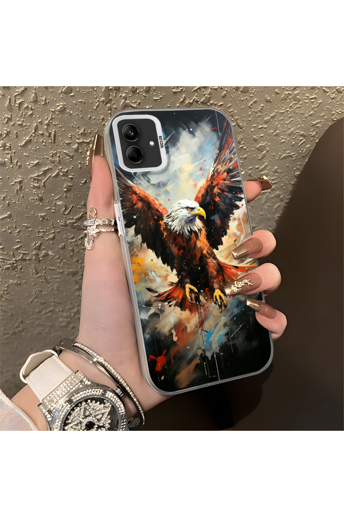 ميزات حافظة متوافقة مع هاتف سامسونج جالاكسي A03، حافظة هاتف صلبة مضادة للسقوط، نمط النسر من Hontinga