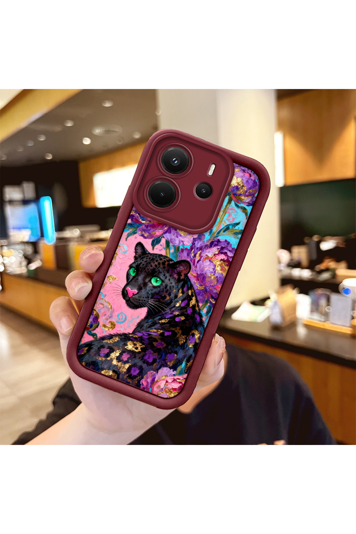 ميزات حافظة هاتف من مادة السيليكون المقاومة للصدمات بنمط باردوس باللون الأحمر الداكن، متوافقة مع هاتف Redmi Note 14 من Hontinga