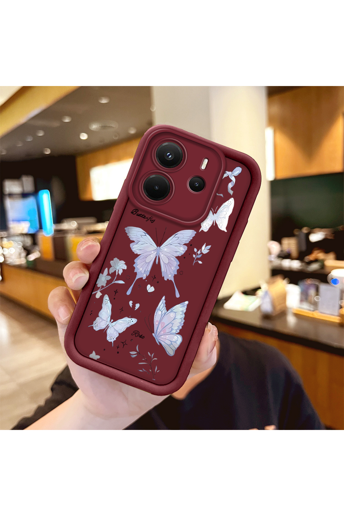 ميزات حافظة هاتف من مادة السيليكون المقاومة للصدمات بنمط الفراشة متوافقة مع هاتف Redmi Note 14 من Hontinga