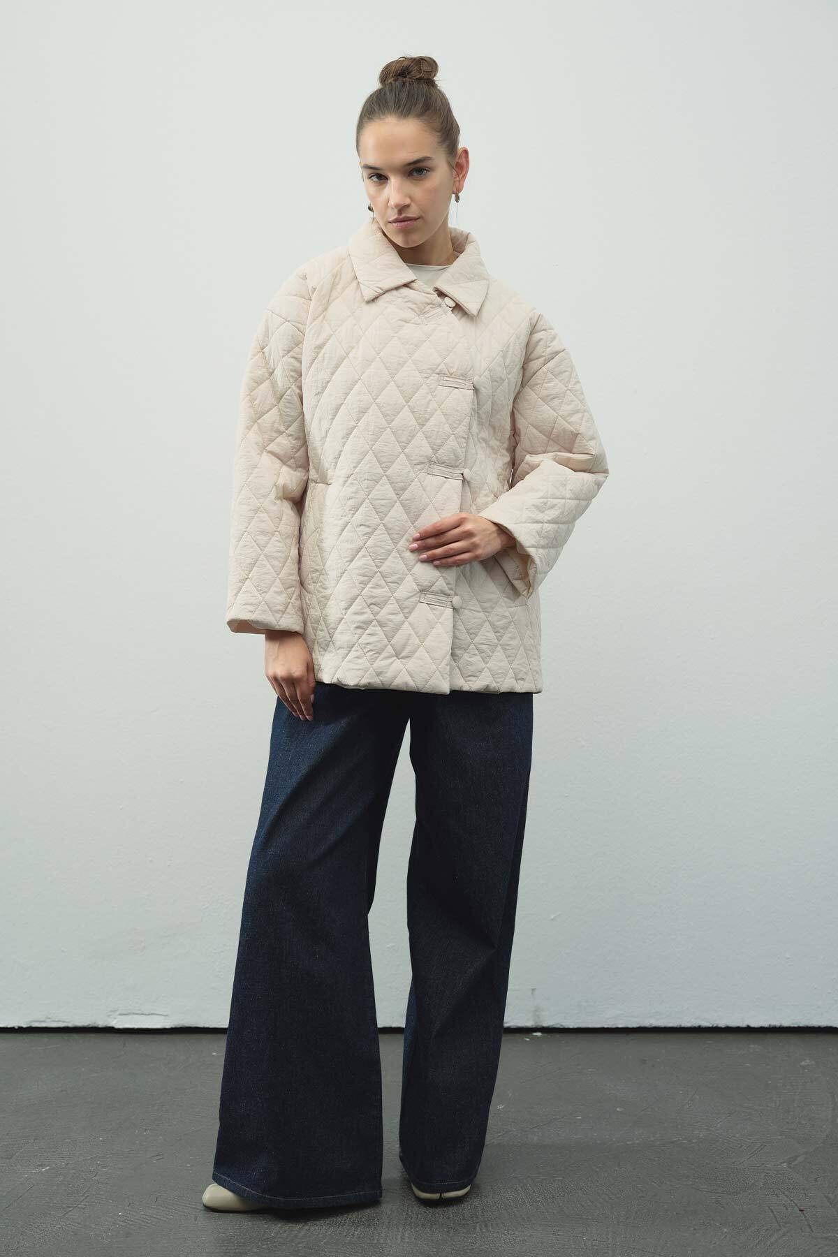 ميزات معطف مبطن بأزرار ومرصع بالأحجار من Hooopstore