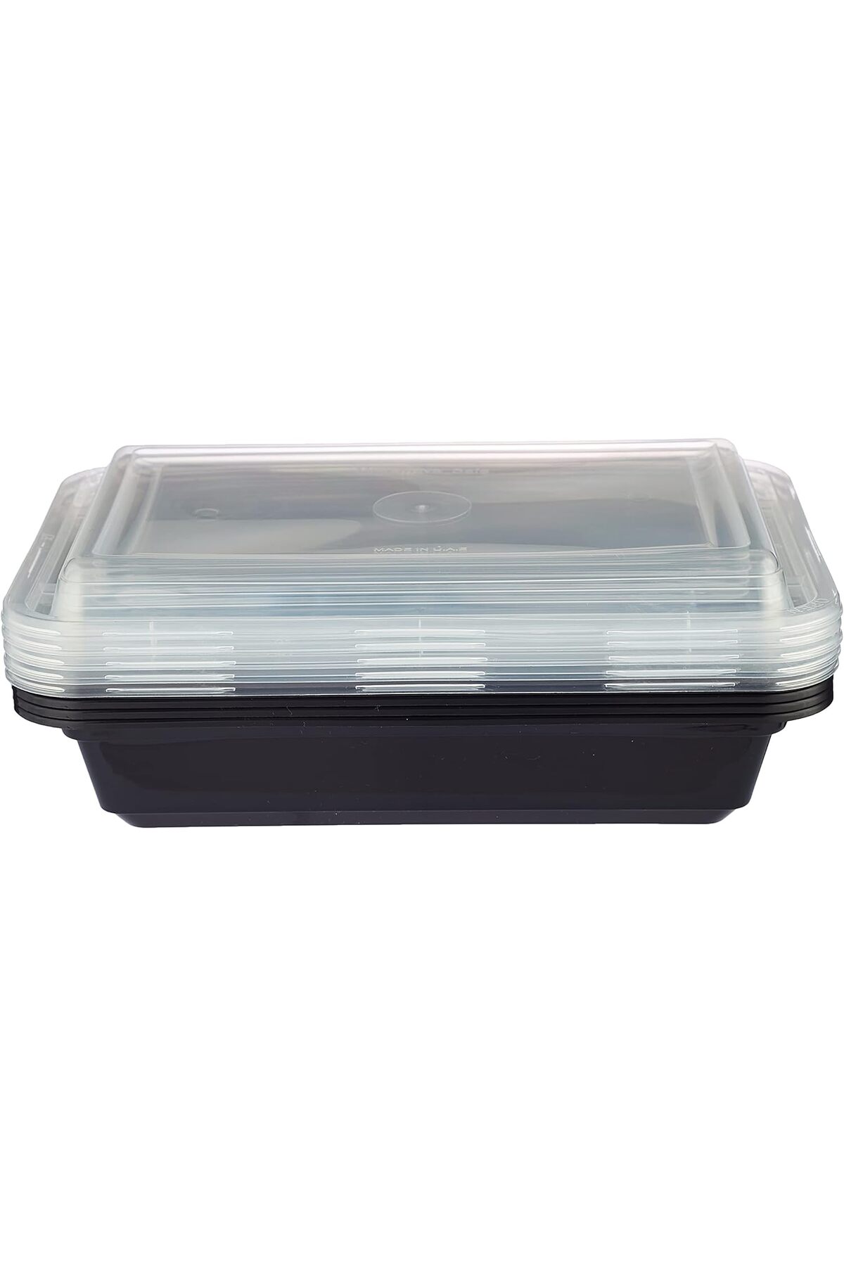 Hotpack وعاء تحضير وجبات الطعام القابل للاستخدام في الميكروويف، ذو قاعدة مستطيلة سوداء اللون، مع غطاء شفاف. (5، أسود)