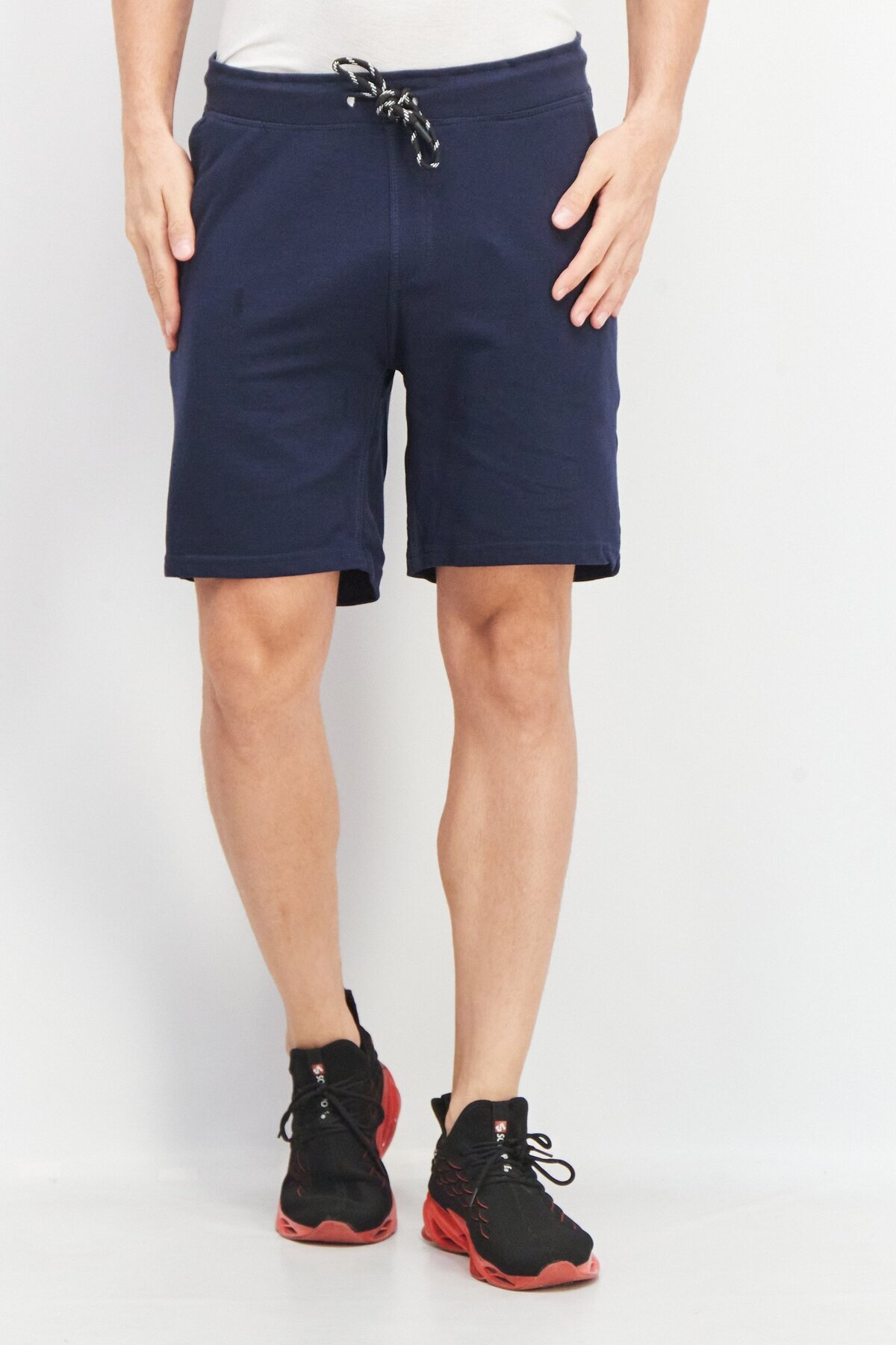 ميزات شورت رجالي أساسي سادة برباط، أزرق داكن من HRTG // 81