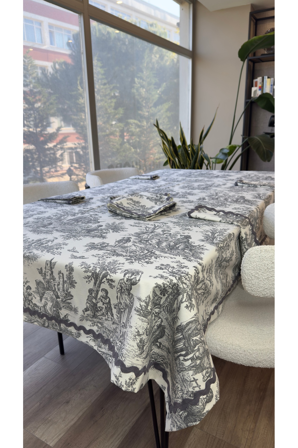 ميزات طقم مفرش طاولة منقوش باللون الرمادي من Hubb Interiors