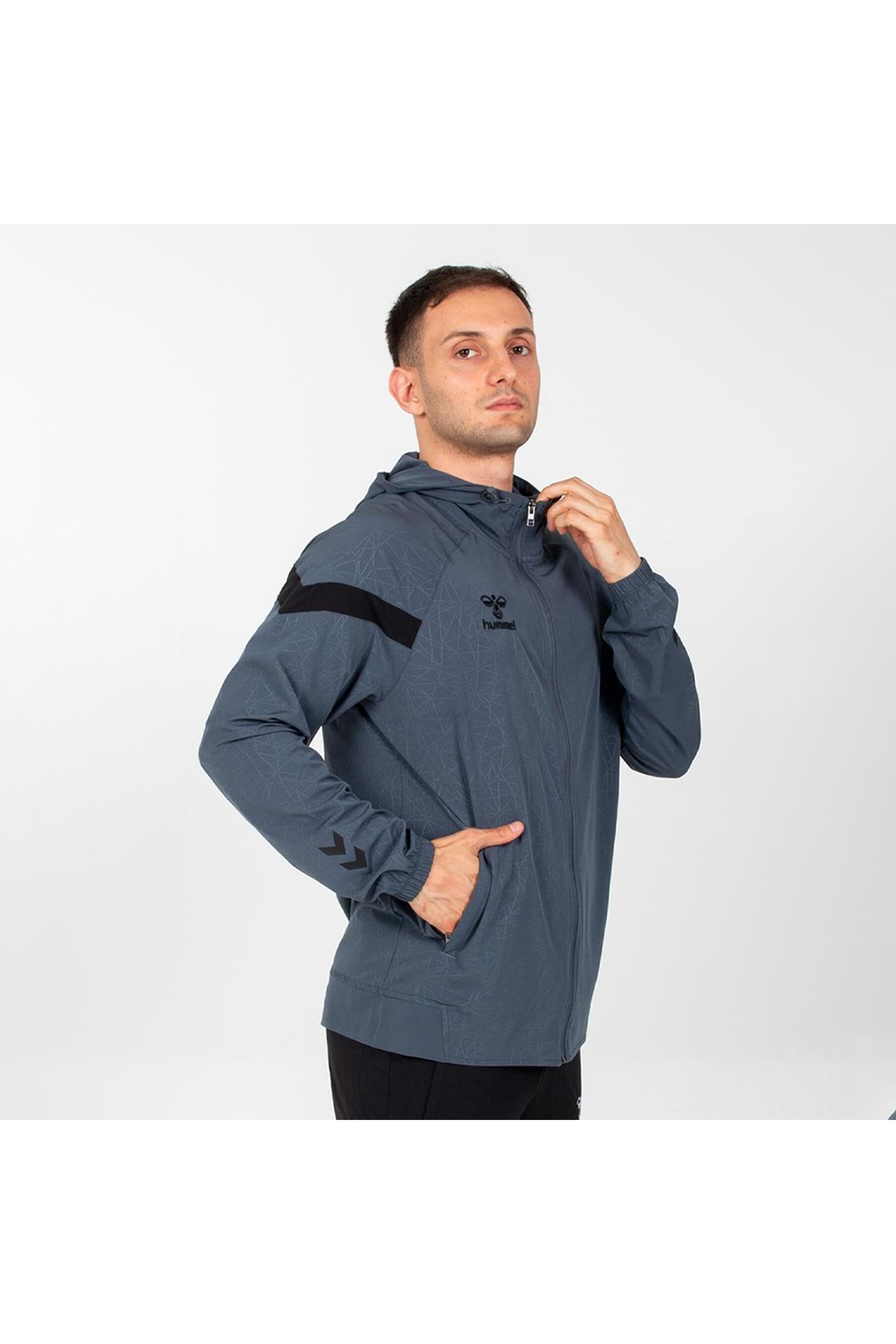 hummel سترة فليكس الرجالية ذات القلنسوة باللون الرمادي