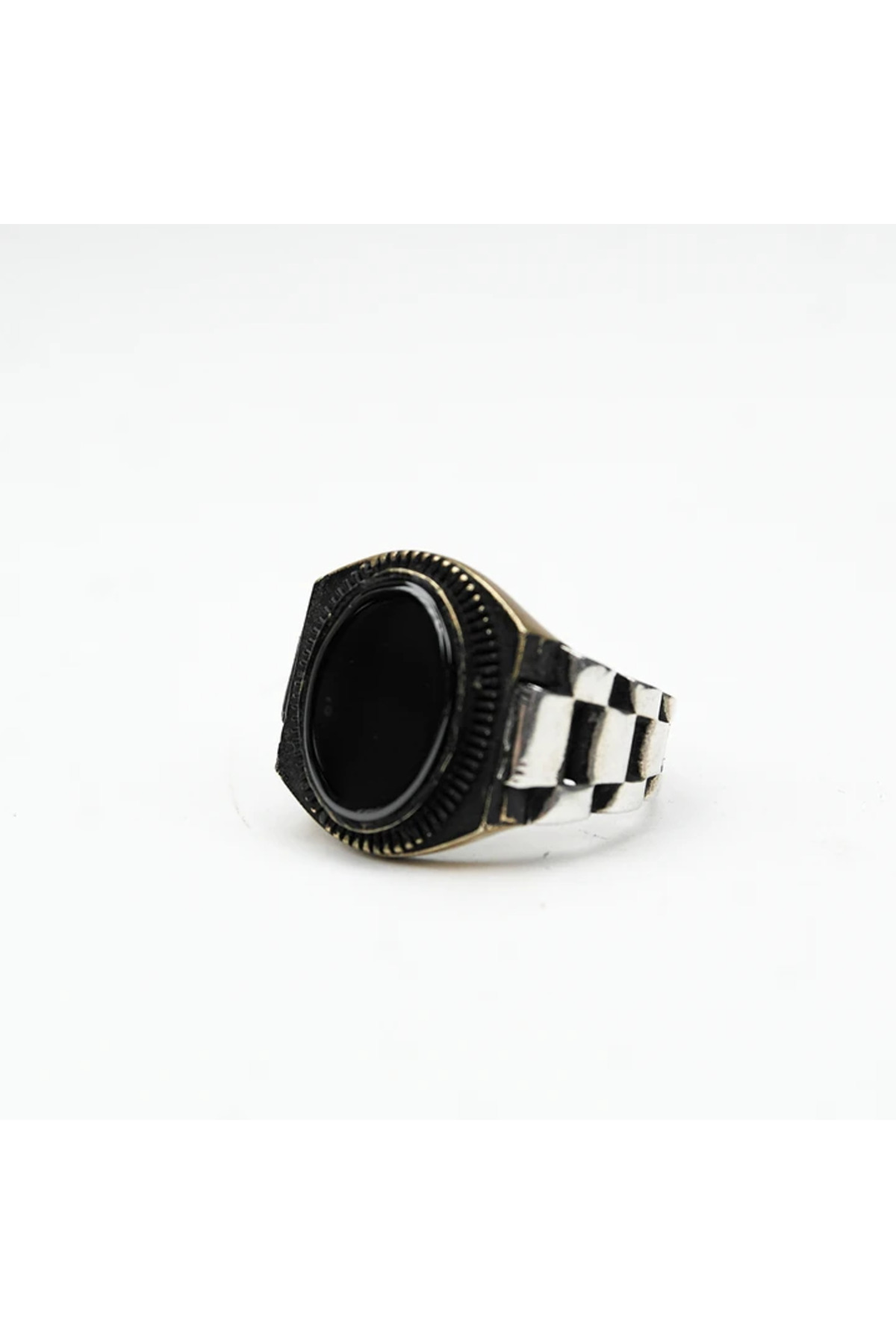 ميزات خاتم رجالي من الفضة بنمط الحبل وحجر الأوبسيديان من HÜNERTAŞ
