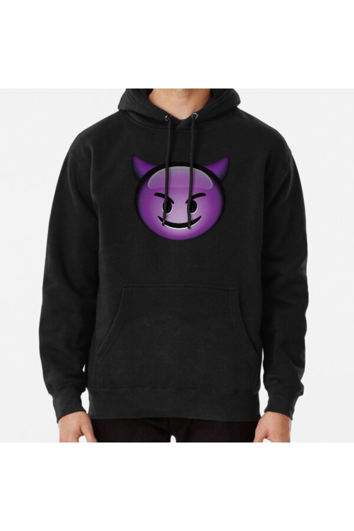 Hvit Stein سويت شيرت مطبوع عليه رموز تعبيرية الشيطان
