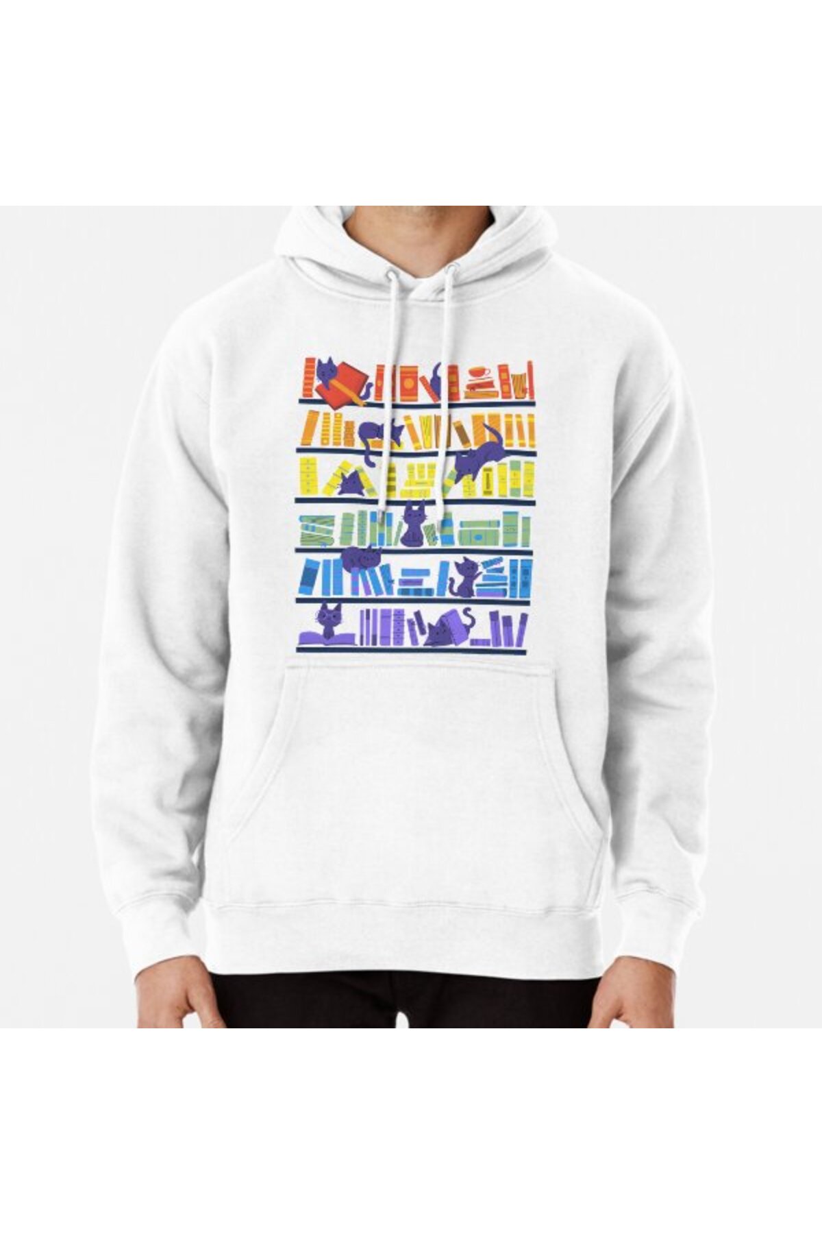 Hvit Stein سويت شيرت مطبوع عليه قطط المكتبة