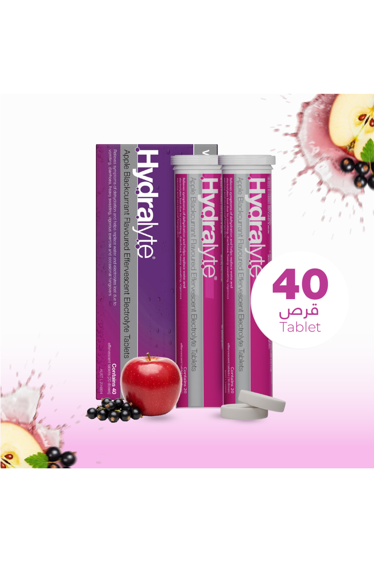 ميزات أقراص فوارة بنكهة التفاح والكشمش الأسود، 40 قرصًا من HYDRALYTE