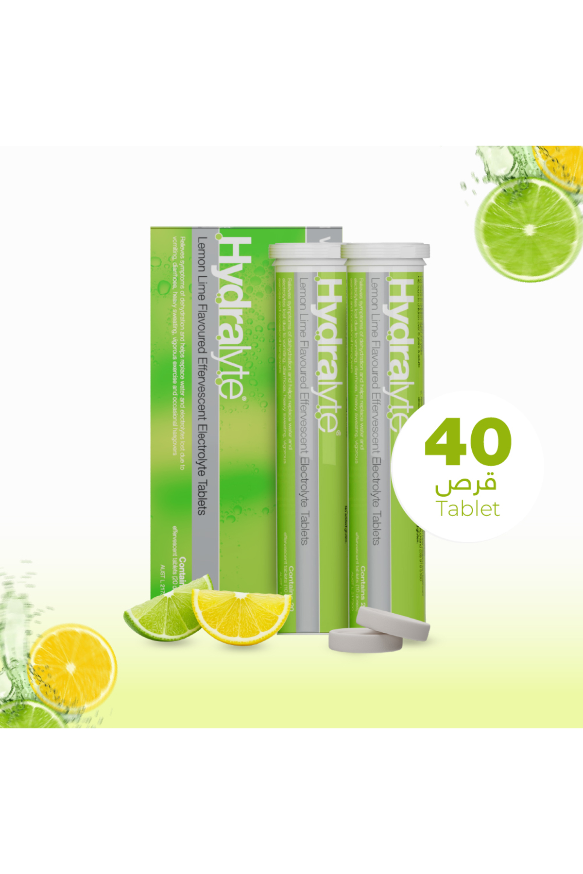 HYDRALYTE أقراص فوارة بنكهة الليمون والليمون الحامض، 40 قرصًا