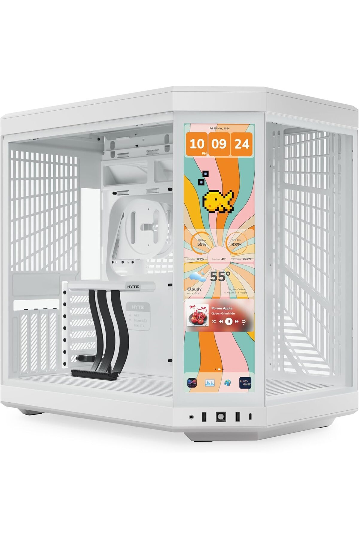 ميزات علبة كمبيوتر Y70 Touch Infinite متوسطة الحجم E-ATX - بيضاء من HYTE