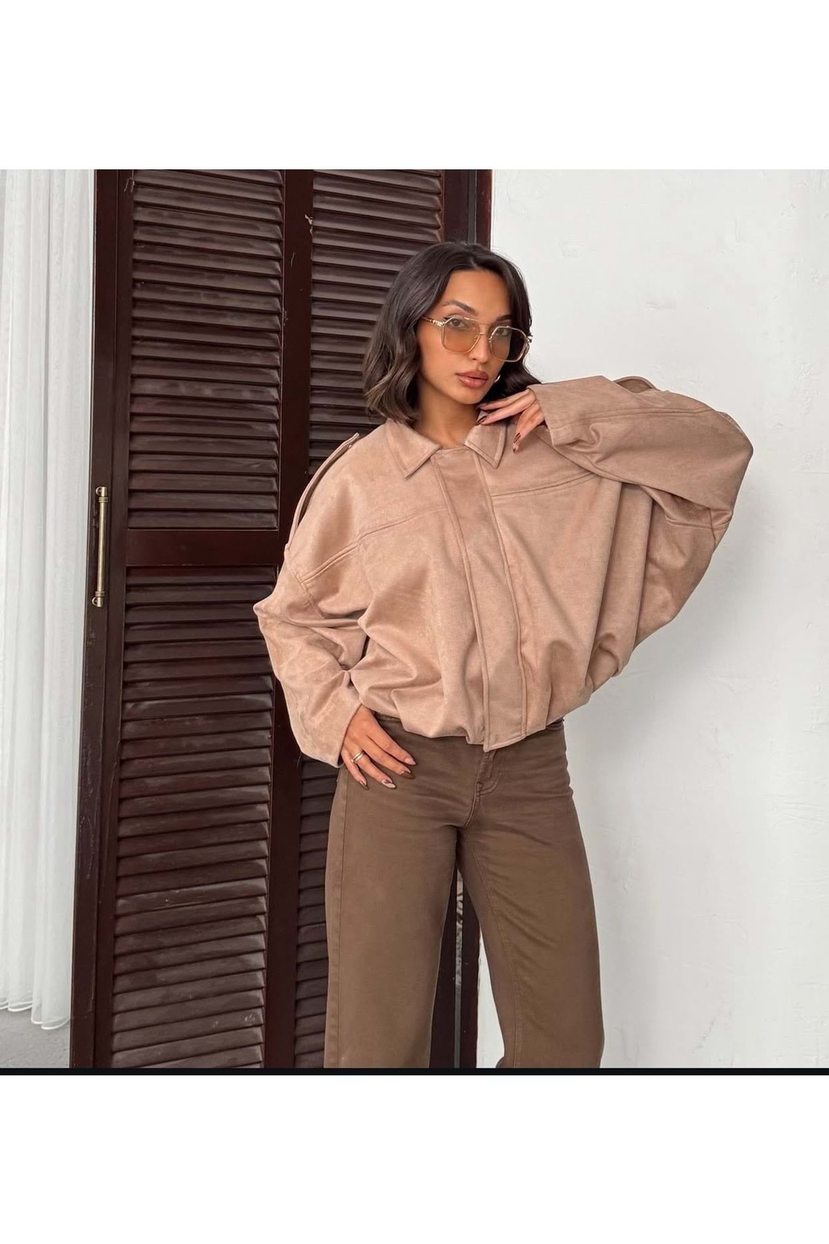 ميزات سترة بومبر من جلد الغزال بلون الجمل من ibeeka