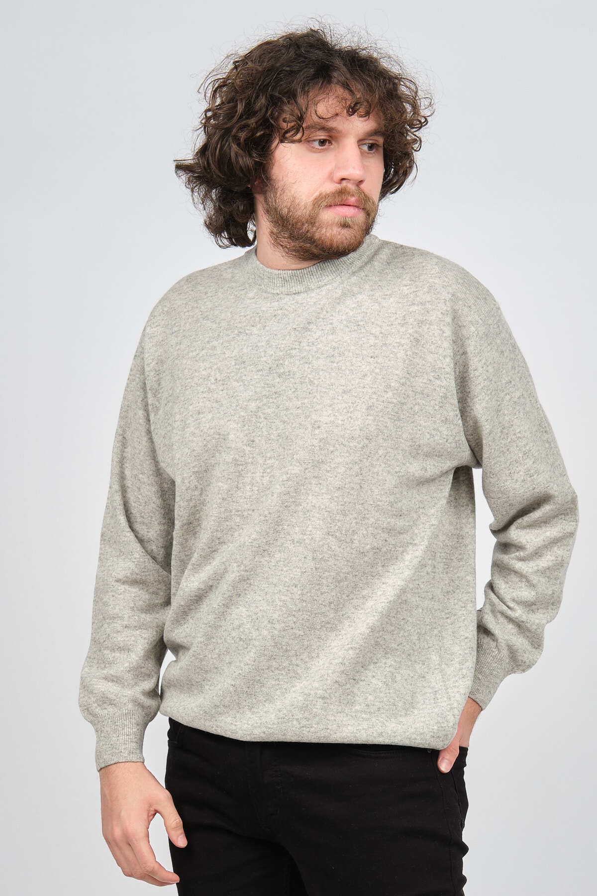 IDA سترة رجالية من صوف الحمل برقبة على شكل حرف V 0593130 رمادي
