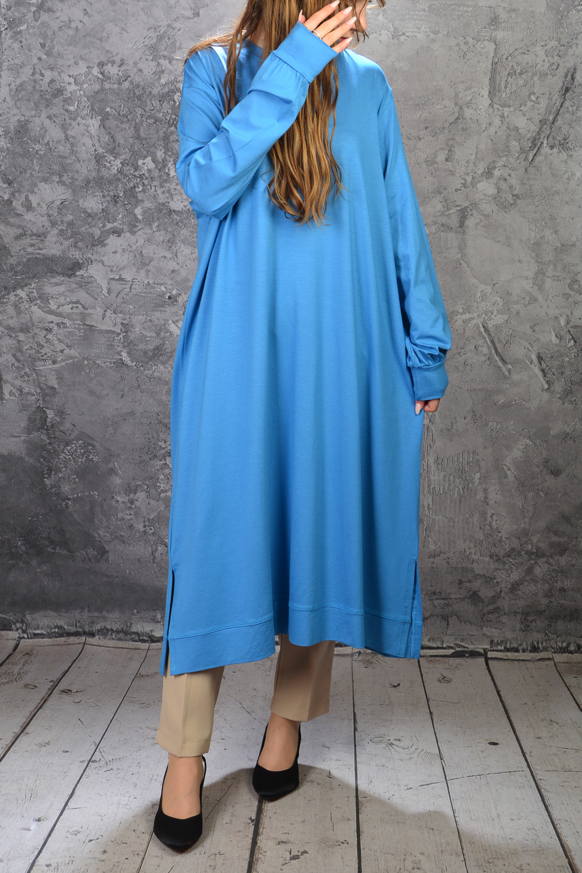 ميزات تونيك طويل من قماش القطن الممشط مريح ومريح من İDOL MODA
