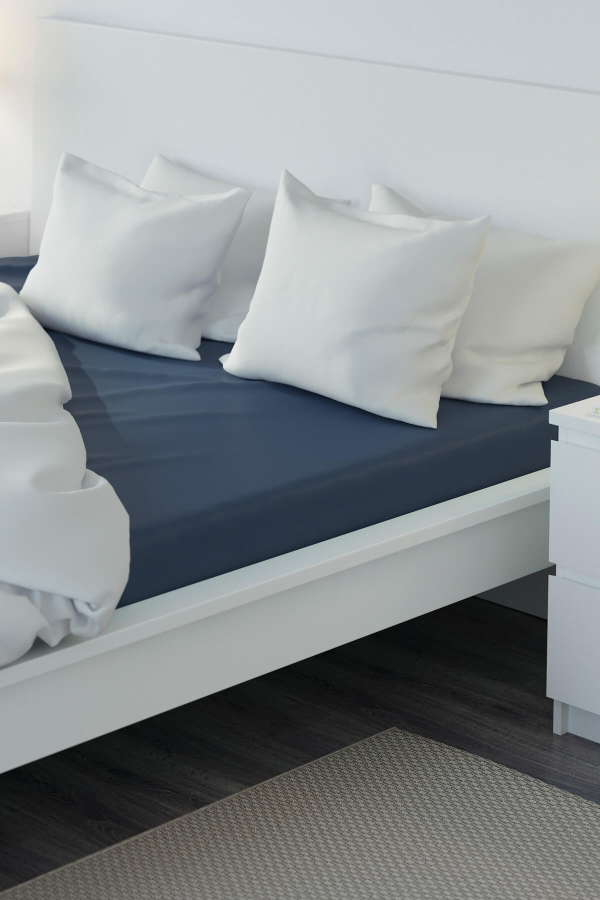 تتوفر الملاءة بالعديد من الألوان مثل الأبيض والرمادي والأزرق الغامق، مما يجعلها تتناسب مع جميع أنماط الديكور. المقاسات المتاحة تشمل 160x200 سم و180x200 سم، مما يلبي احتياجات مختلف أنواع الأسرة.