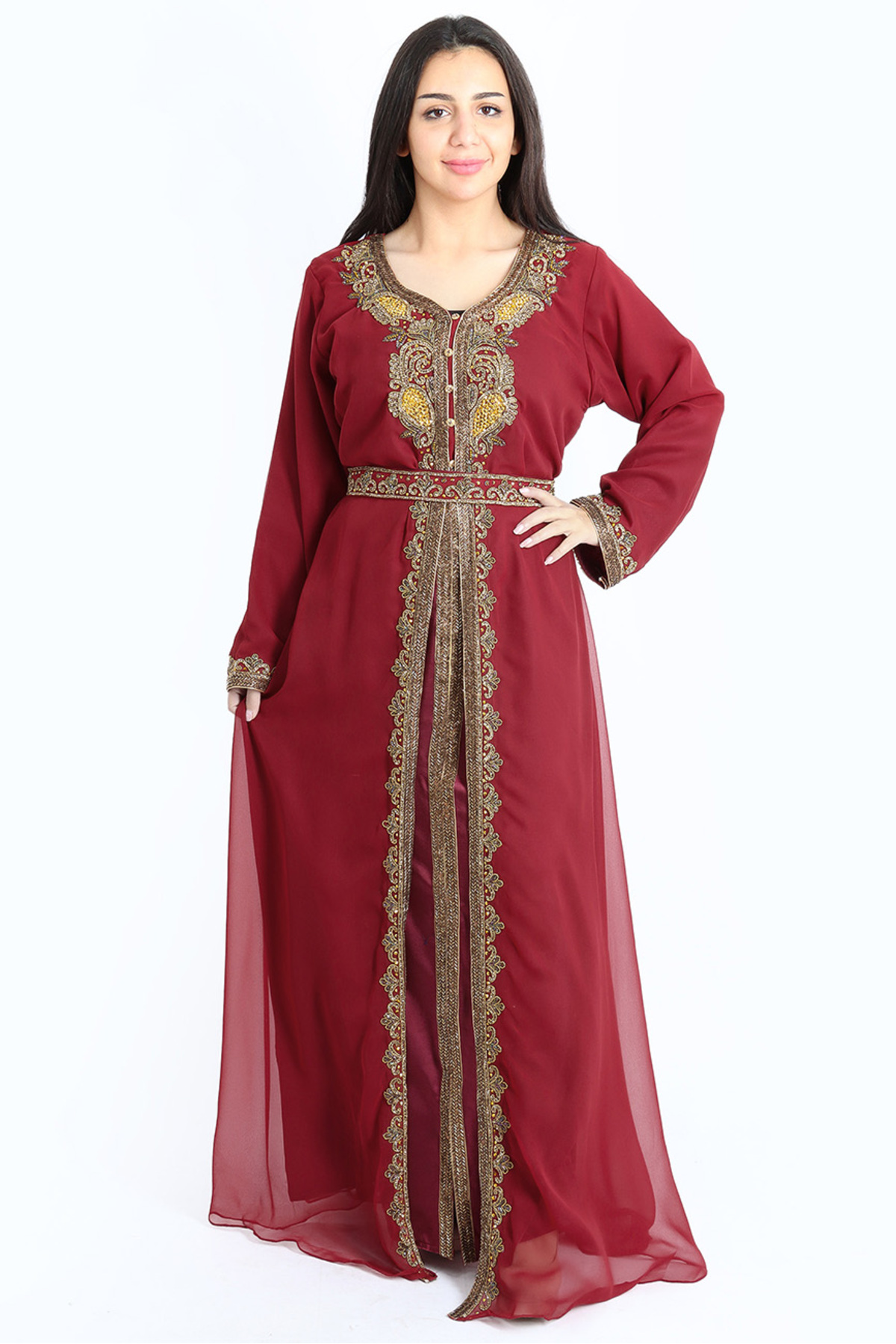 ميزات قفطان أرجواني اللون من Crystal Craft Threadwork IKW9876 من IKKXA
