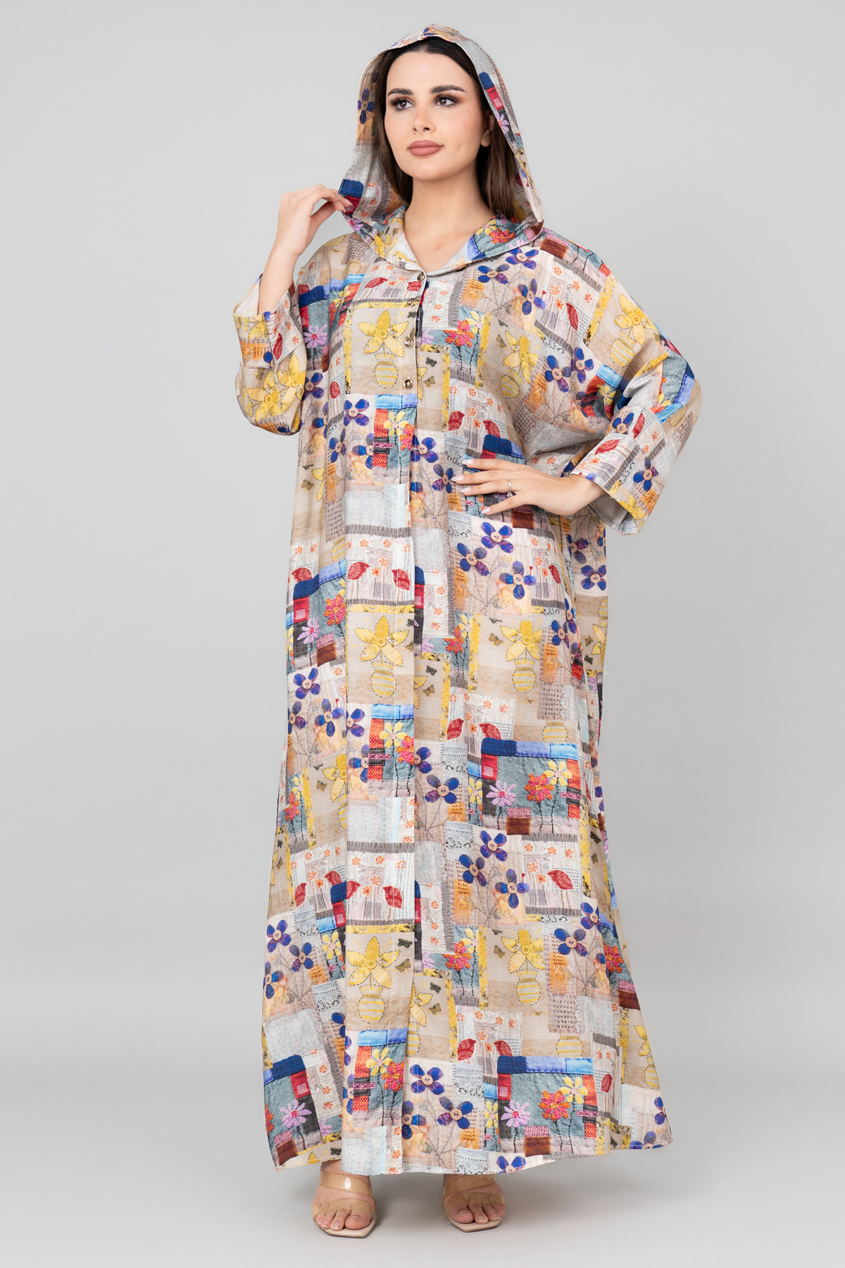 ميزات جلابية بغطاء للرأس مطبوعة بنمط من IKKXA